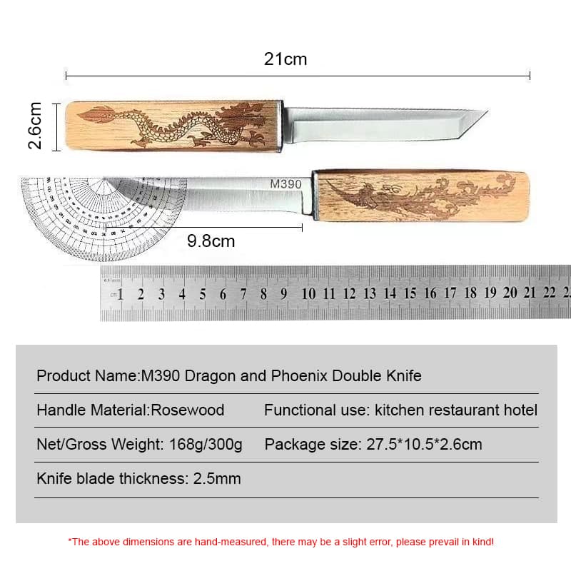 2-in-1 Dual Blade Solid Wood Kitchen Knife High Hardness Multifunctional Fruit and Paring with Small Sharp Blade