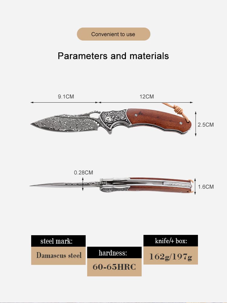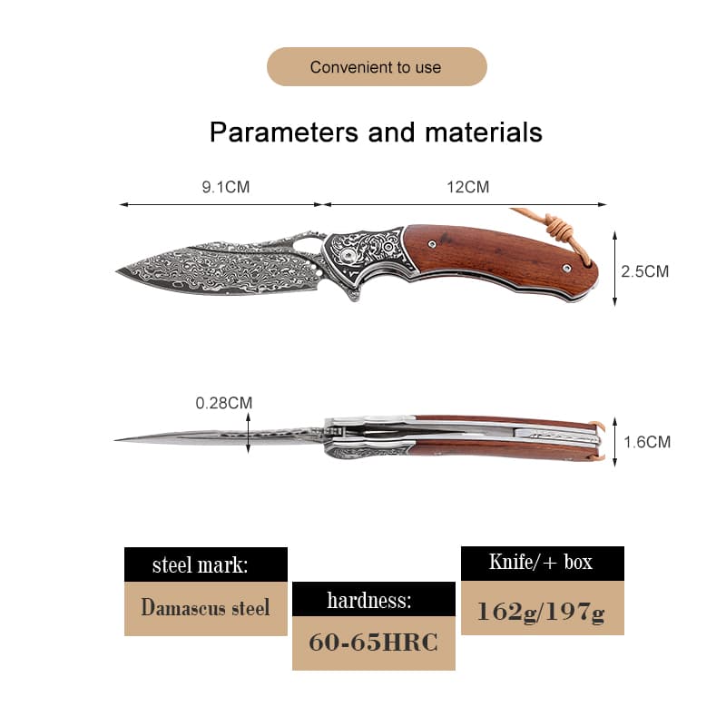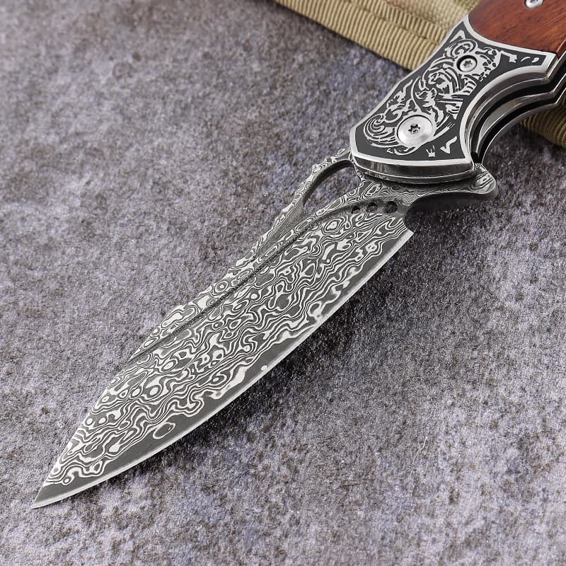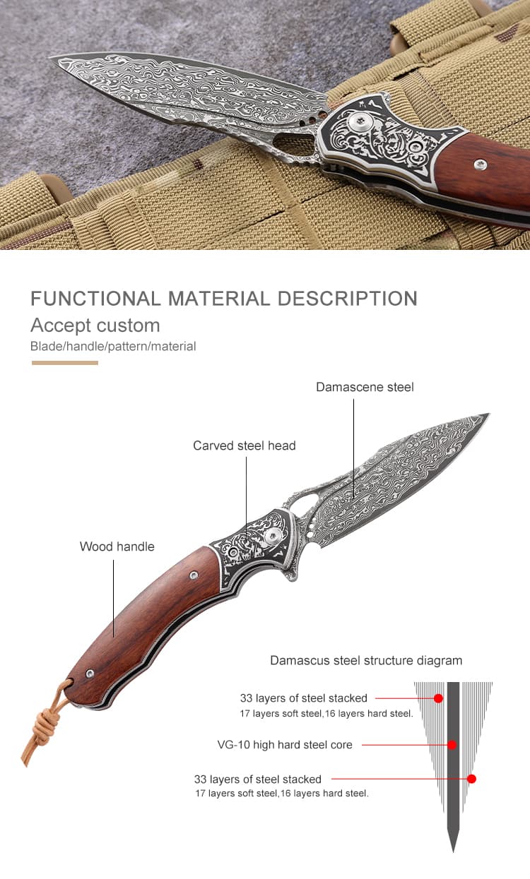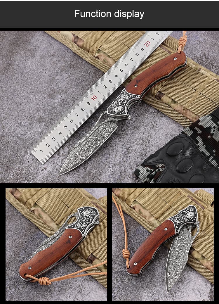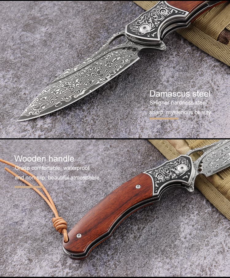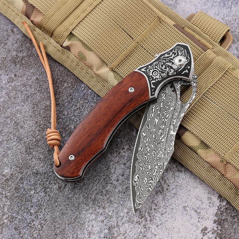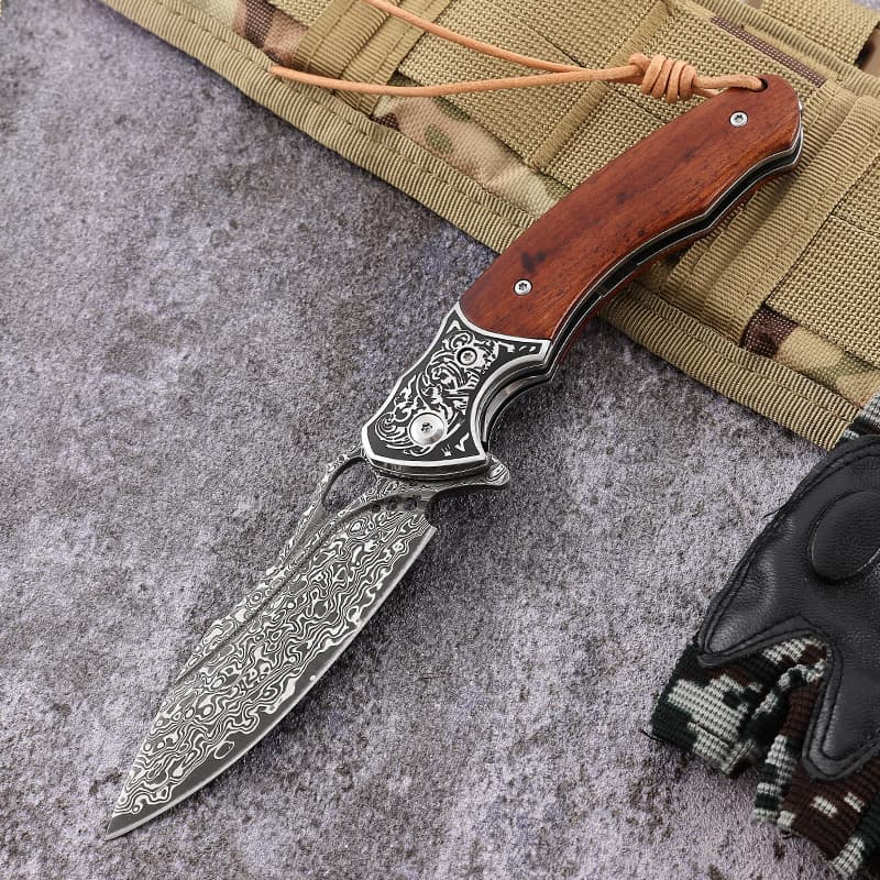 Damascus Steel Pocket Knife for Men High Quality Self Defense EDC Tool Tactical Survival Hunting Folding Wooden Han
