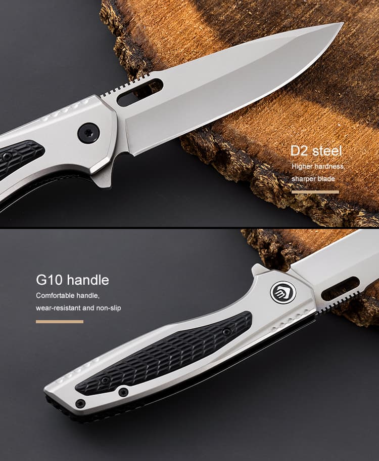 Factory Direct Custom D2 Blade Pocket Knife with Black G10 Handle for Survival Outdoor Hunting Camping Tactical Wholesale