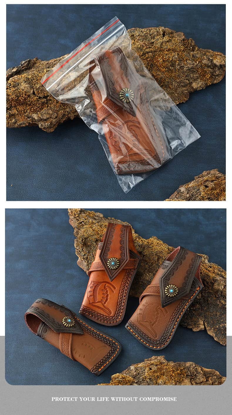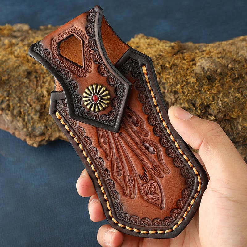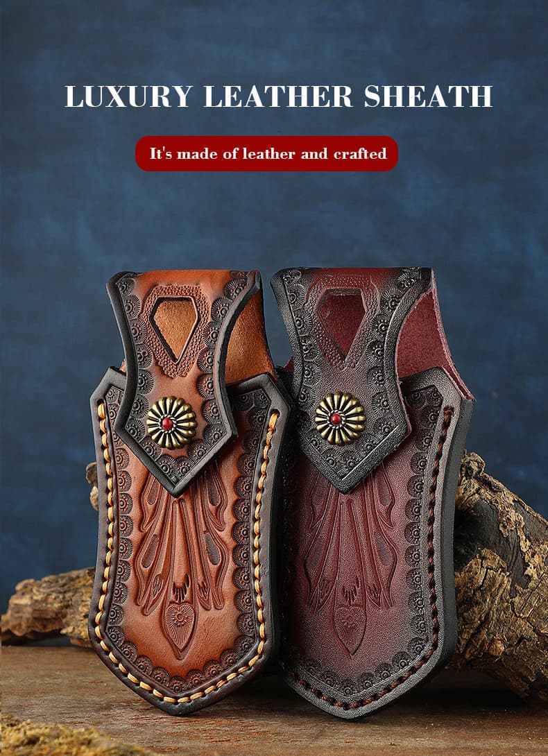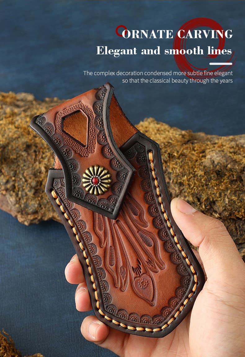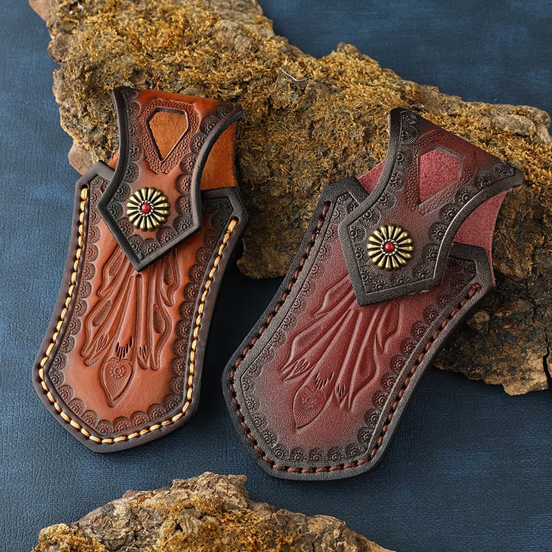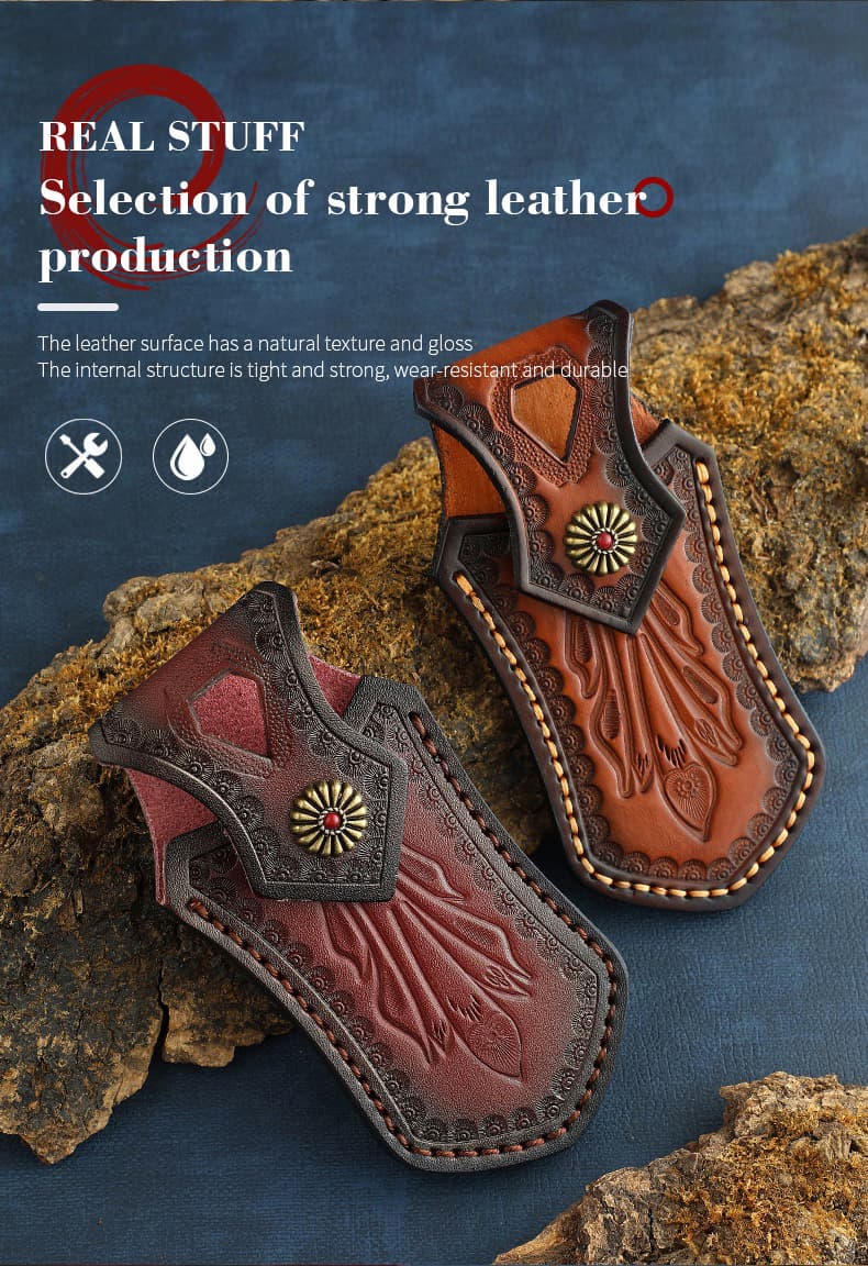 High-end Classic 8-9inch Folding Knife Leather Sheath Portable Pocket Knife Cover Luxury Holder for Collection OEM Customizable