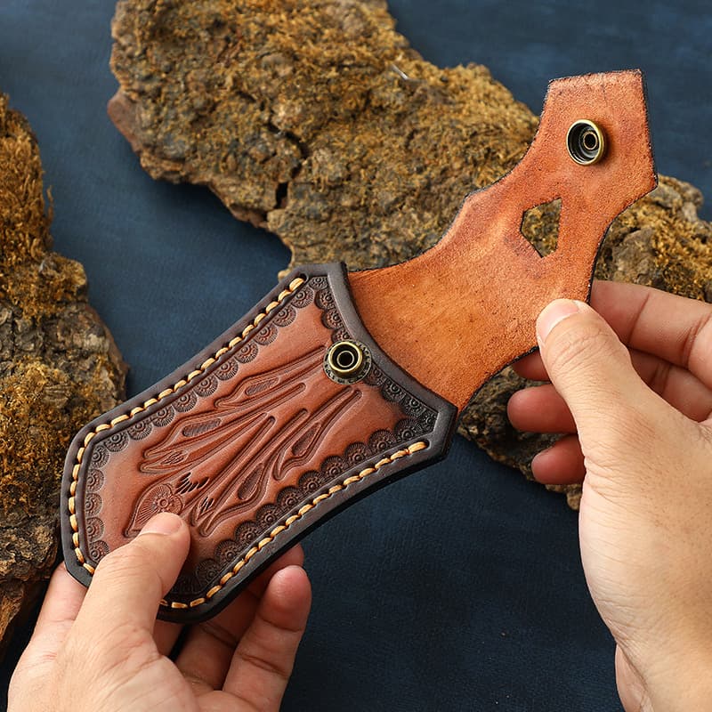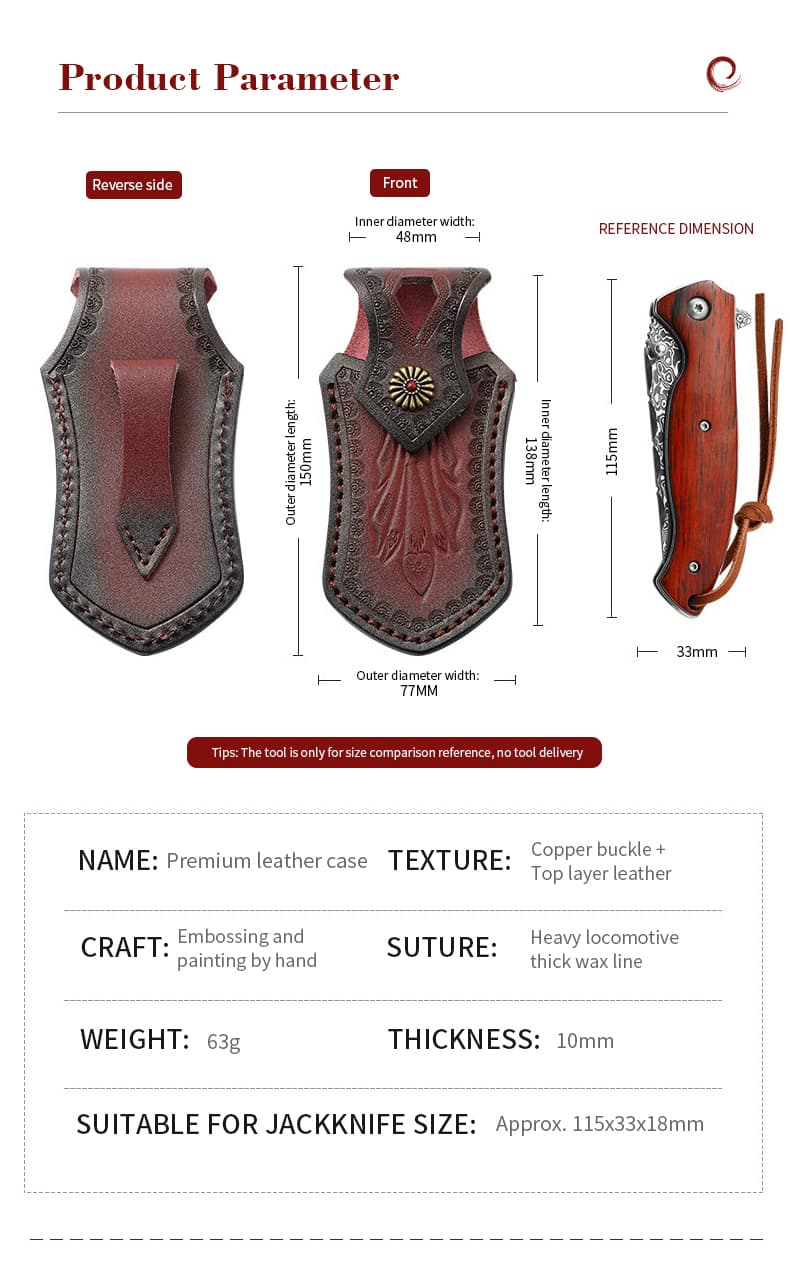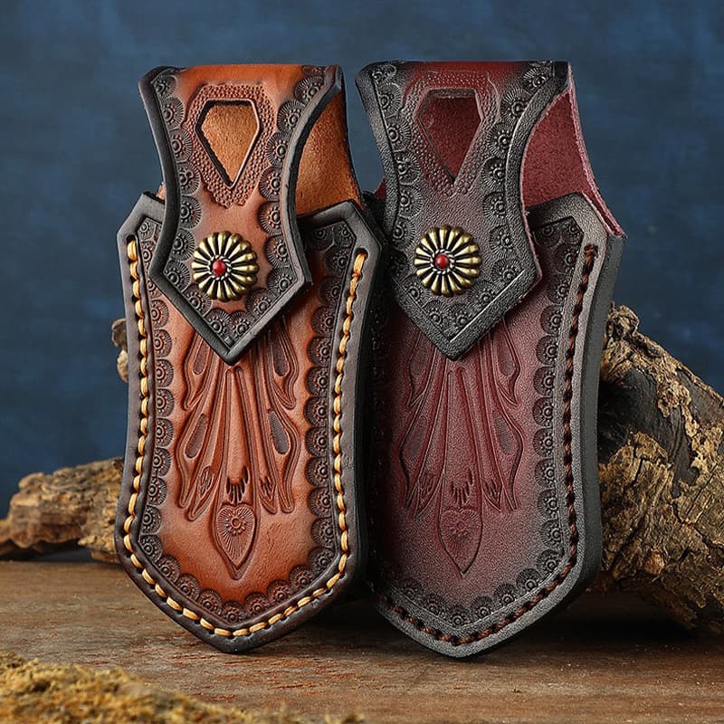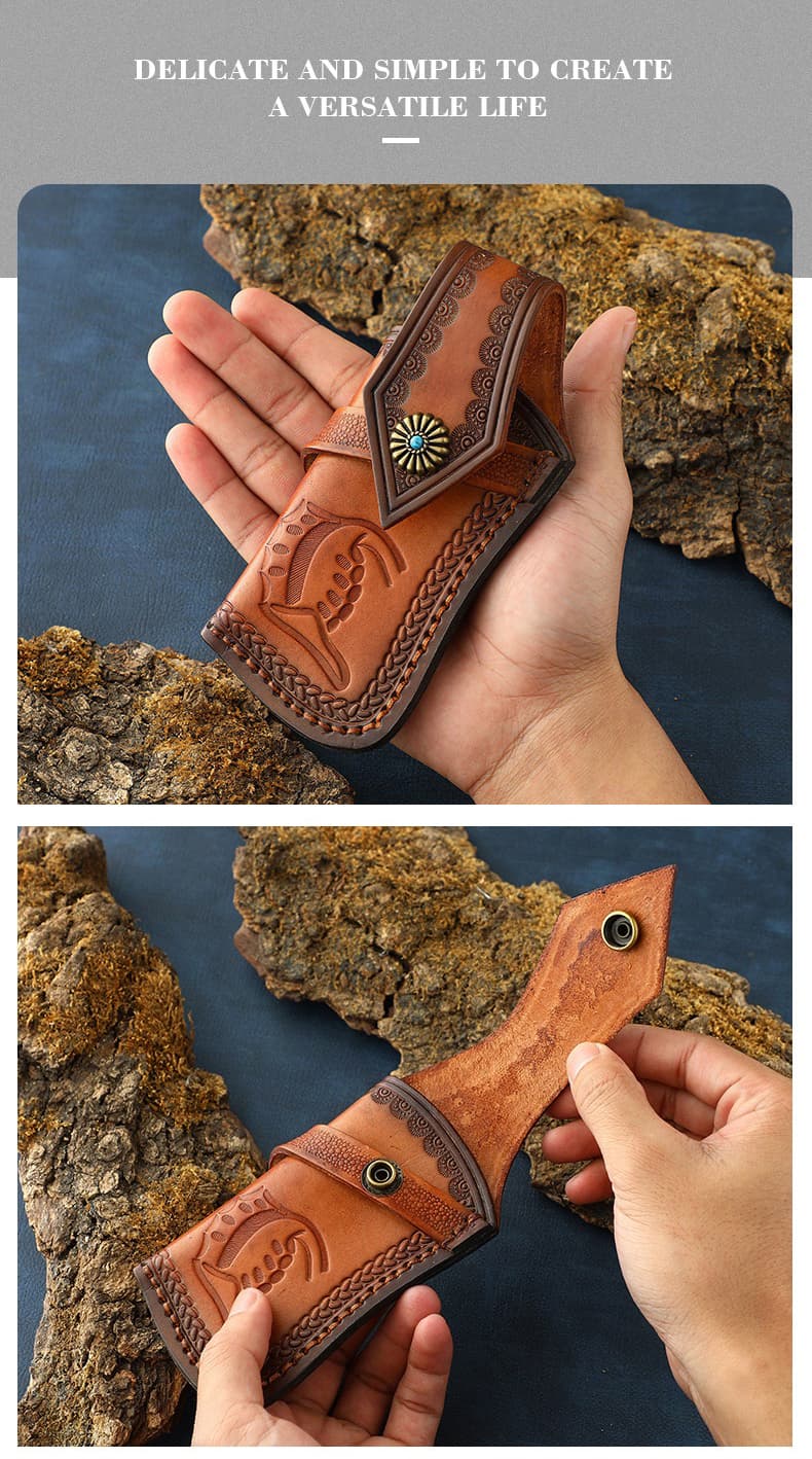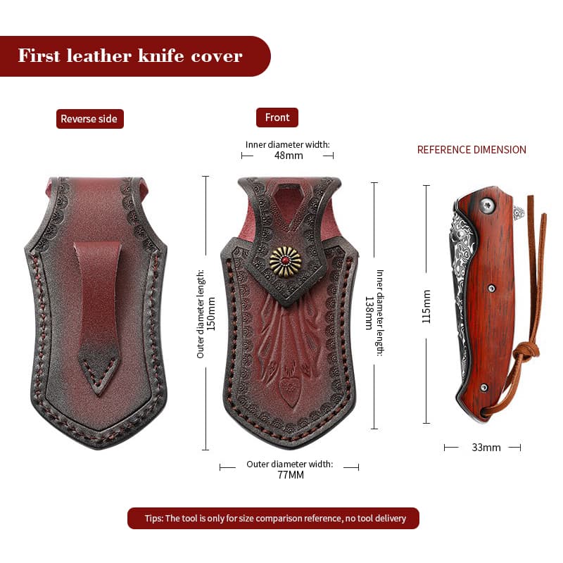 High-end Classic 8-9inch Folding Knife Leather Sheath Portable Pocket Knife Cover Luxury Holder for Collection OEM Customizable