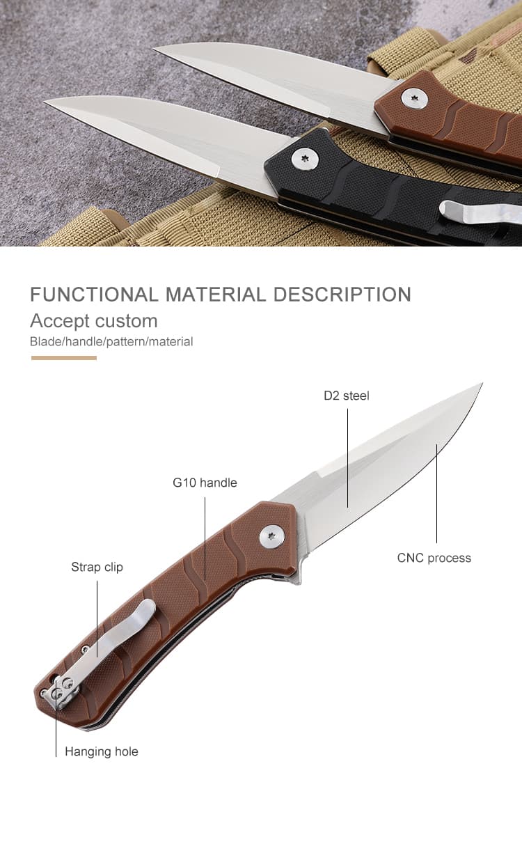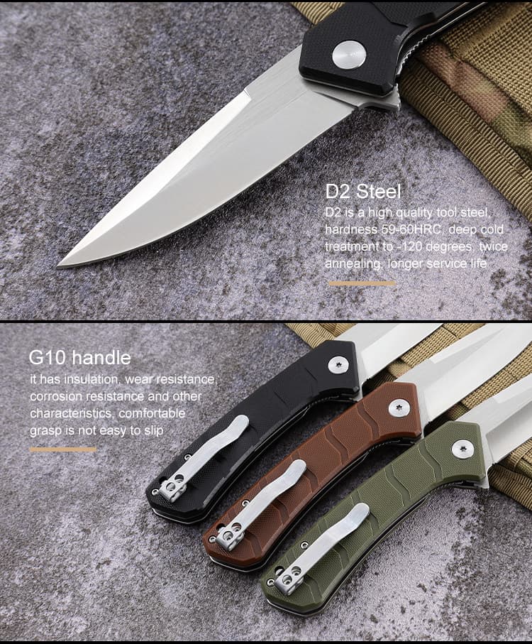 High Hardness D2 Steel Blade G10 Handle Folding Pocket Knife EDC Camping Survival Self Defense Tactical Gift Knife