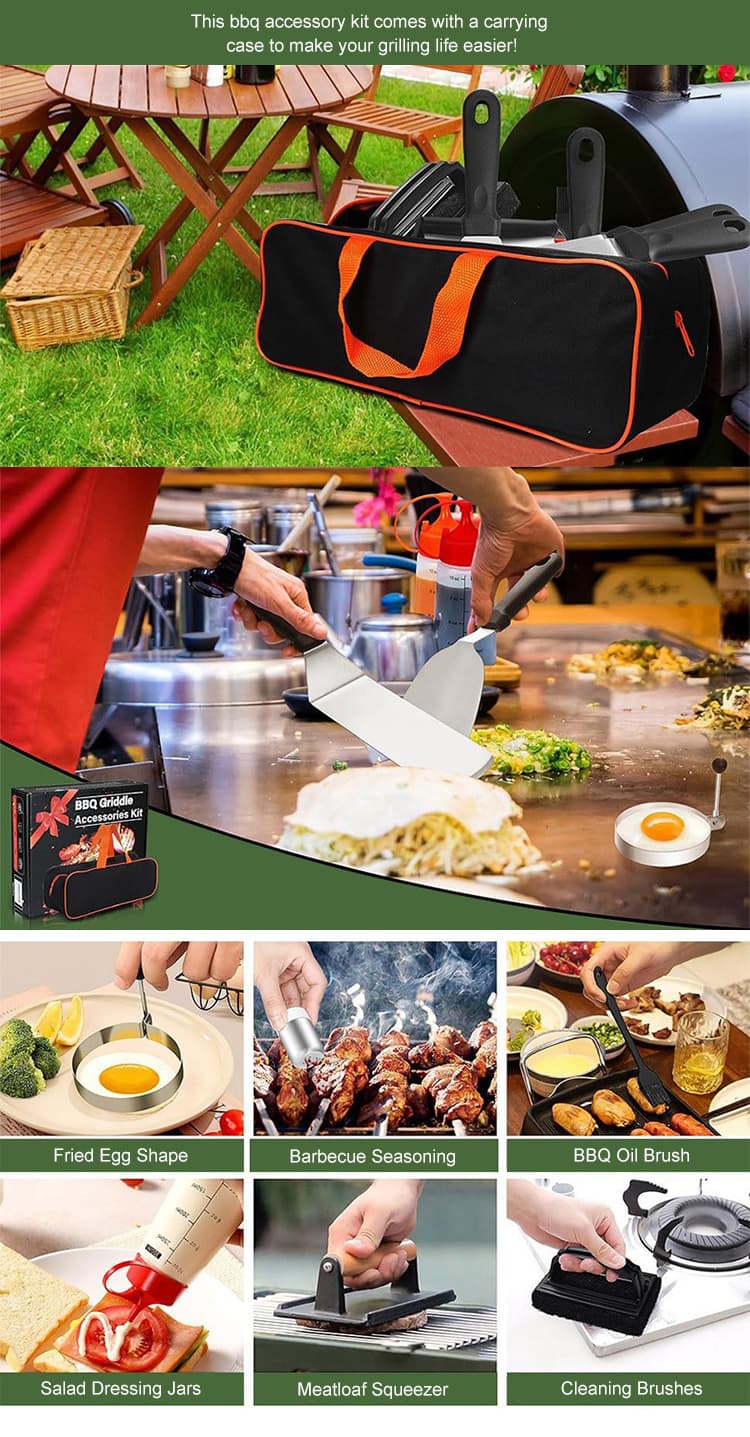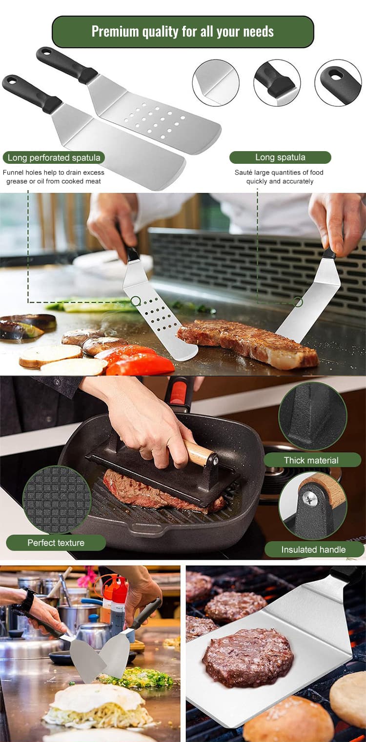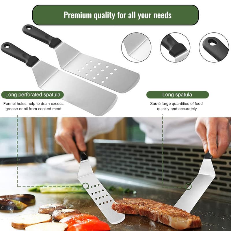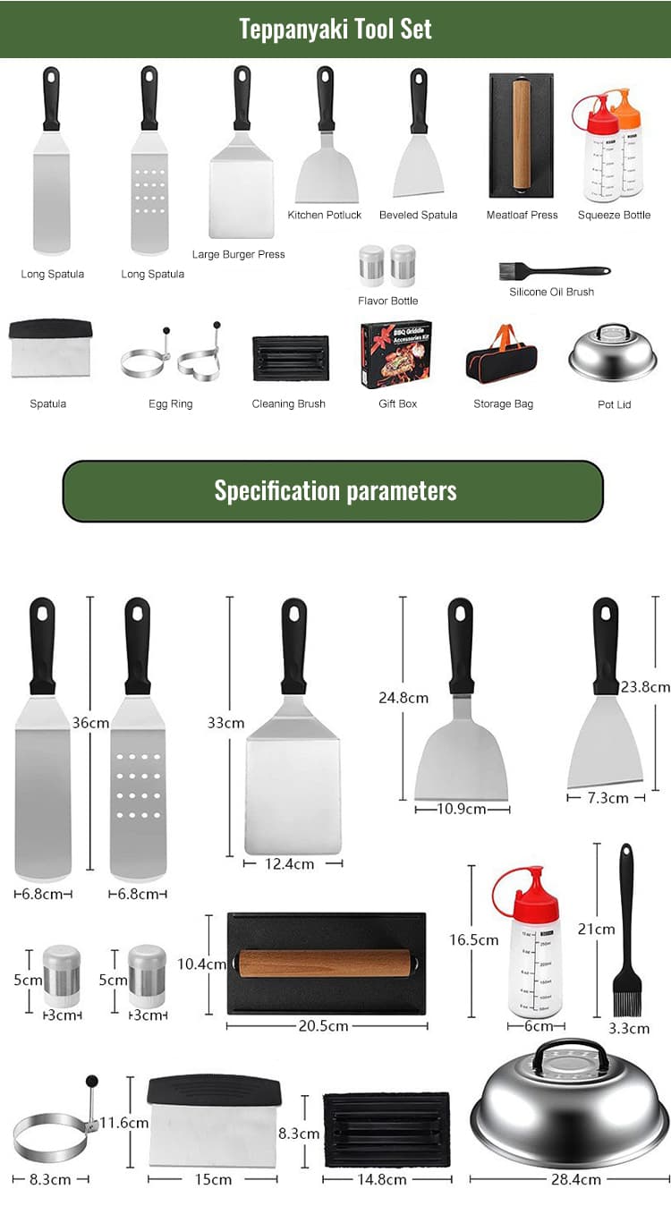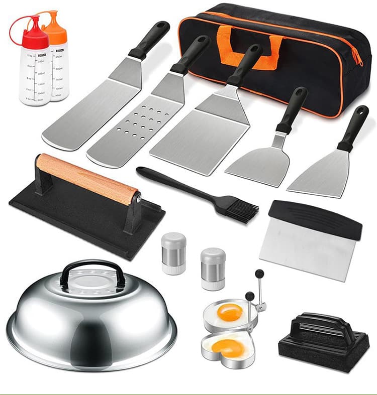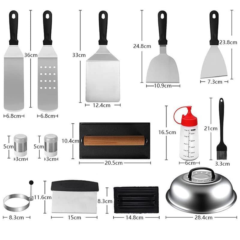 Hot Sale Stainless Steel Grill Tool 17 Piece Set Outdoor BBQ Teppanyaki Shovel Grill Set