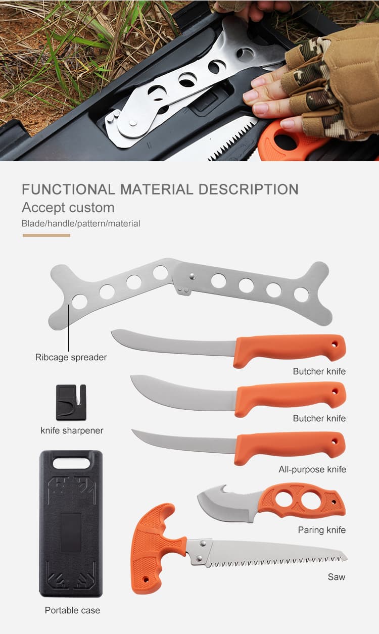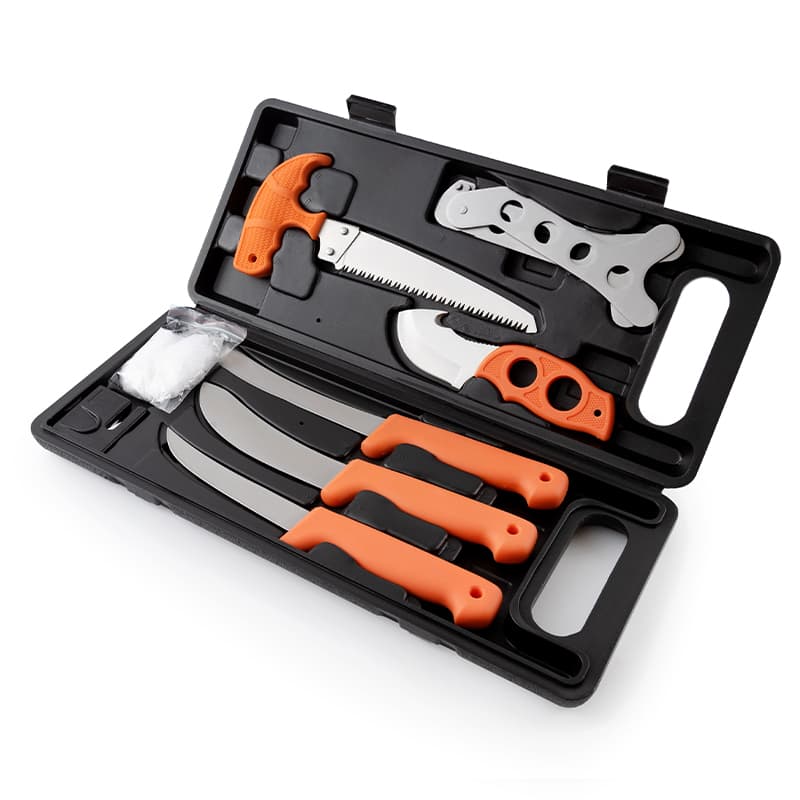 Hunting Fishing Knife Set Portable Butcher Processor Set Outdoor Multipurpose Wild Field 9pcs Stainless Steel 3CR13 Black Case