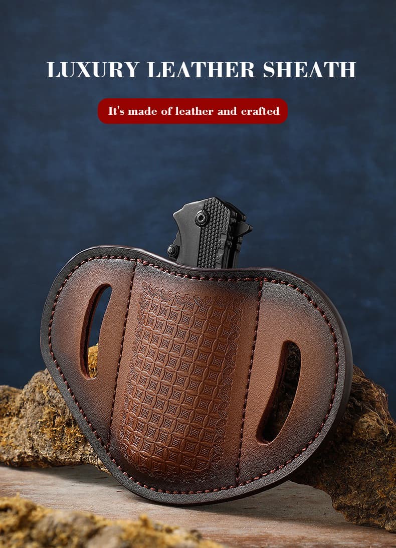 Leather Sheath for Folding Knife Cowhide Knife Cover Storage Pouch for Small Blades Outdoor Tactical Belt Bag