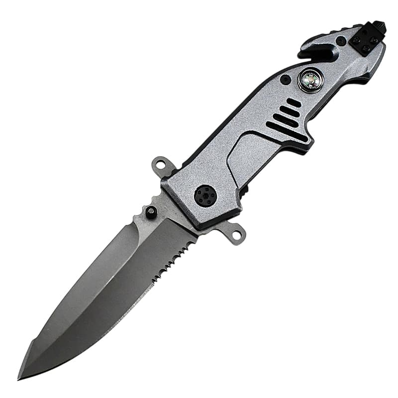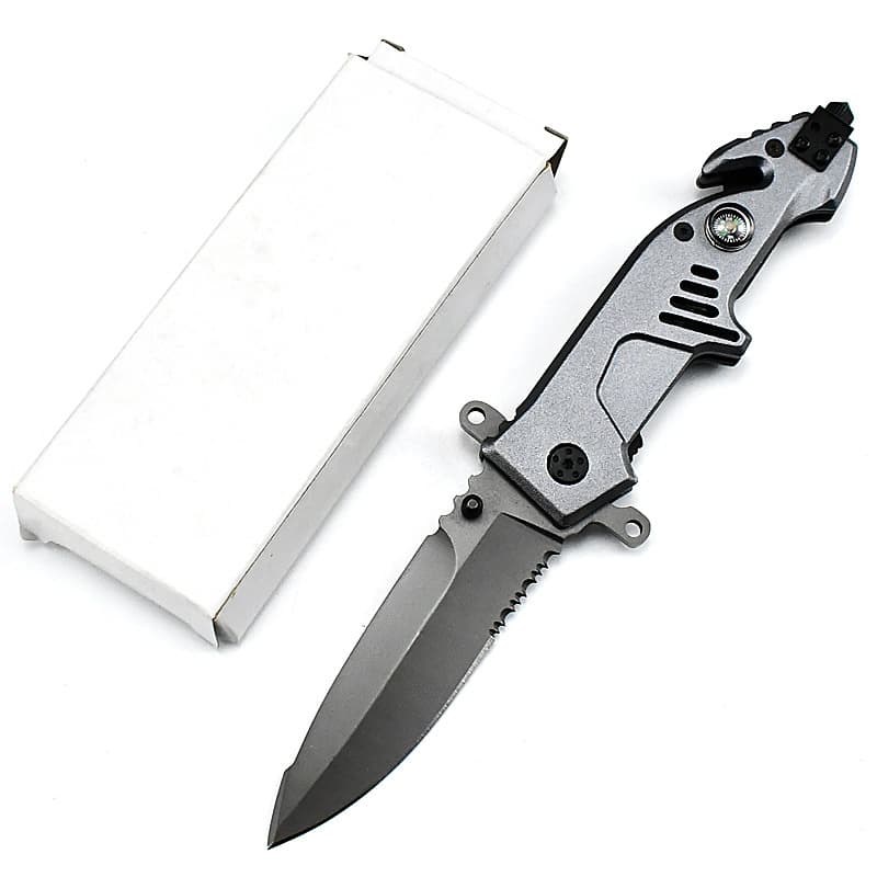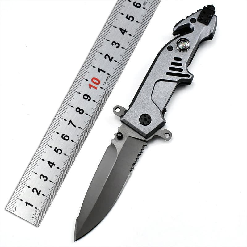 Multi-functional EDC Hand Knife Outdoor Folding Blade 5Cr14Mov Steel Pocket Knife with Seration Compass Portable Camping Tool
