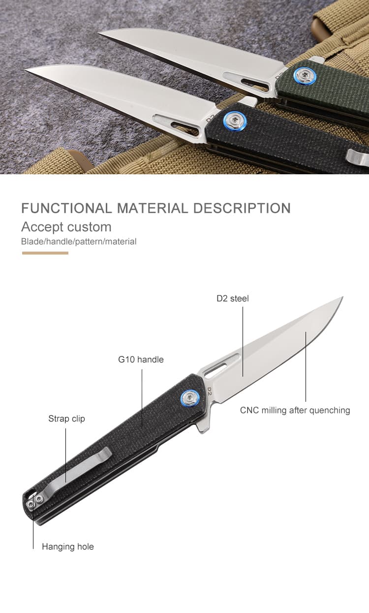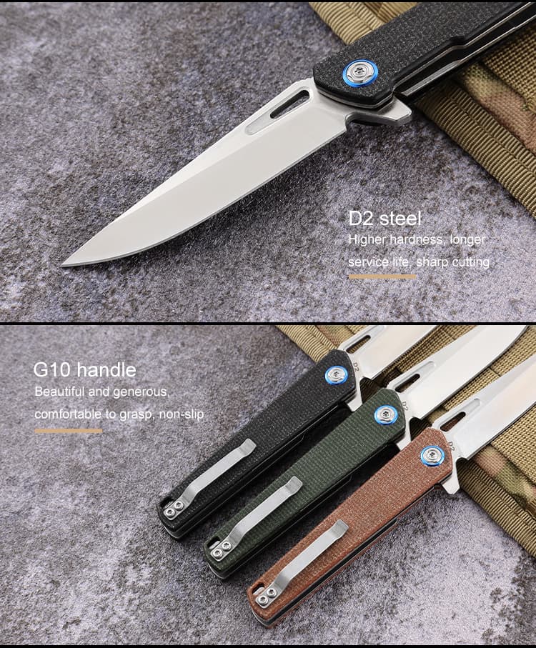 New Arrival OEM D2 Steel Blade G10 Handle Hunting Tactical Knife Survival Outdoor Folding Pocket Custom Knife