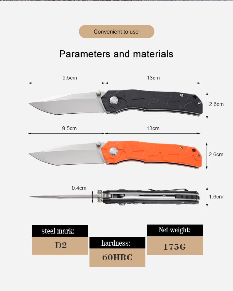 Hongrui is a factory with a history of 31 years, dedicated to design, development, and production. It sells outdoor knives, outdoor tools, life-saving tools, hardware products, plastic products, and kitchen supplies. The company has a complete and scientific quality management system. We support any customization and welcome your email. Feature: Multifunctional Place of Origin: Guangdong, China Customized support: OEM, OBM Material :4Cr13Mov steel Sample Time: 3 - 7 Days Packing box: box or custom Logo: Accept Custom Logo