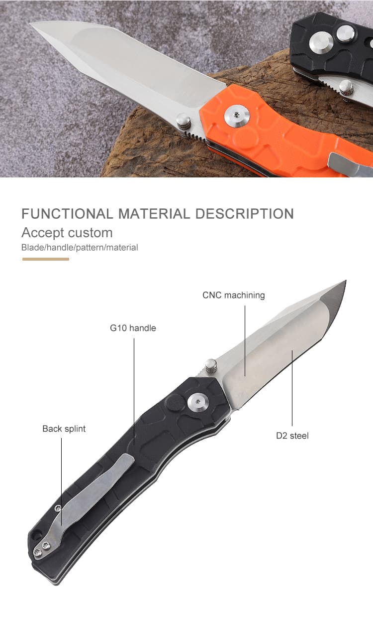 New Creative Can Be Customized G10 Handle D2 Steel Blade Folding Pocket Knife Camping Hunting Knife