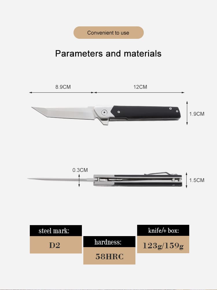 Material : D2 steel + G10 handle