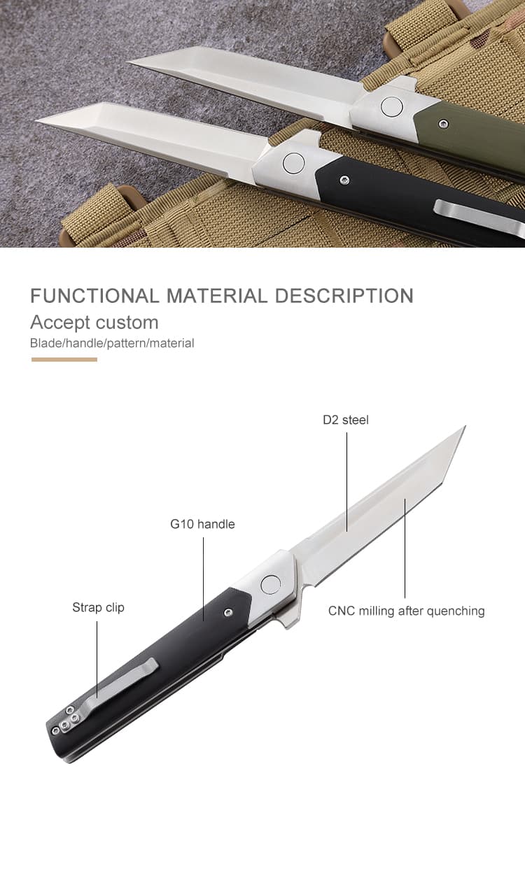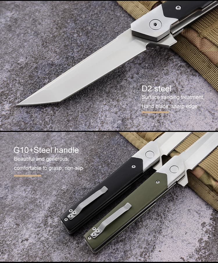 New Outdoor Survival Self Defense Tool Knife D2 Steel Camping Tactical Defense Folding Pocket Knife G10 Handle Knife