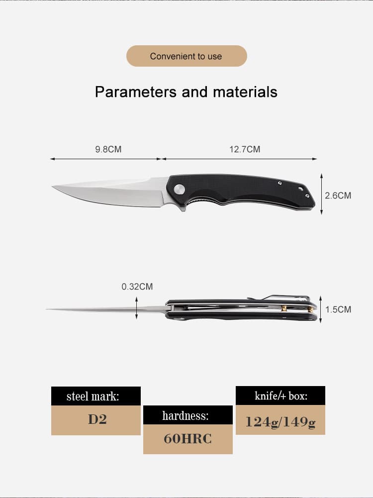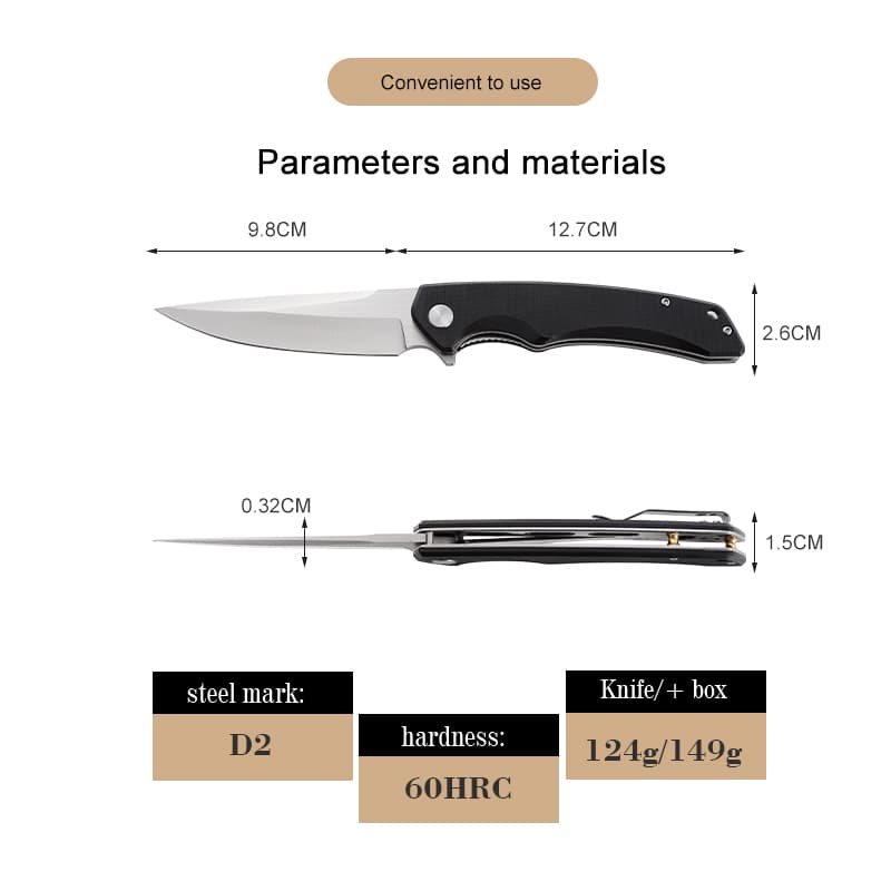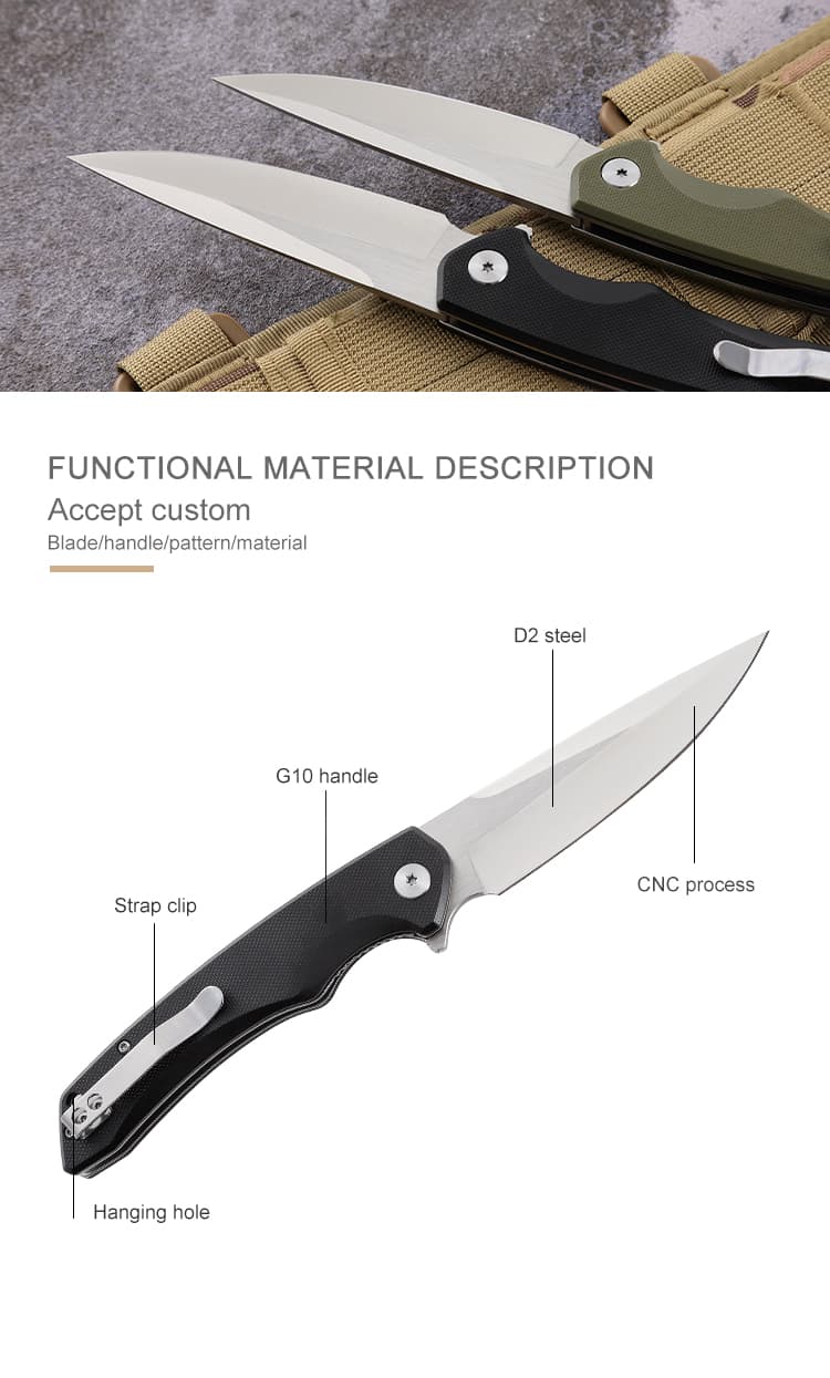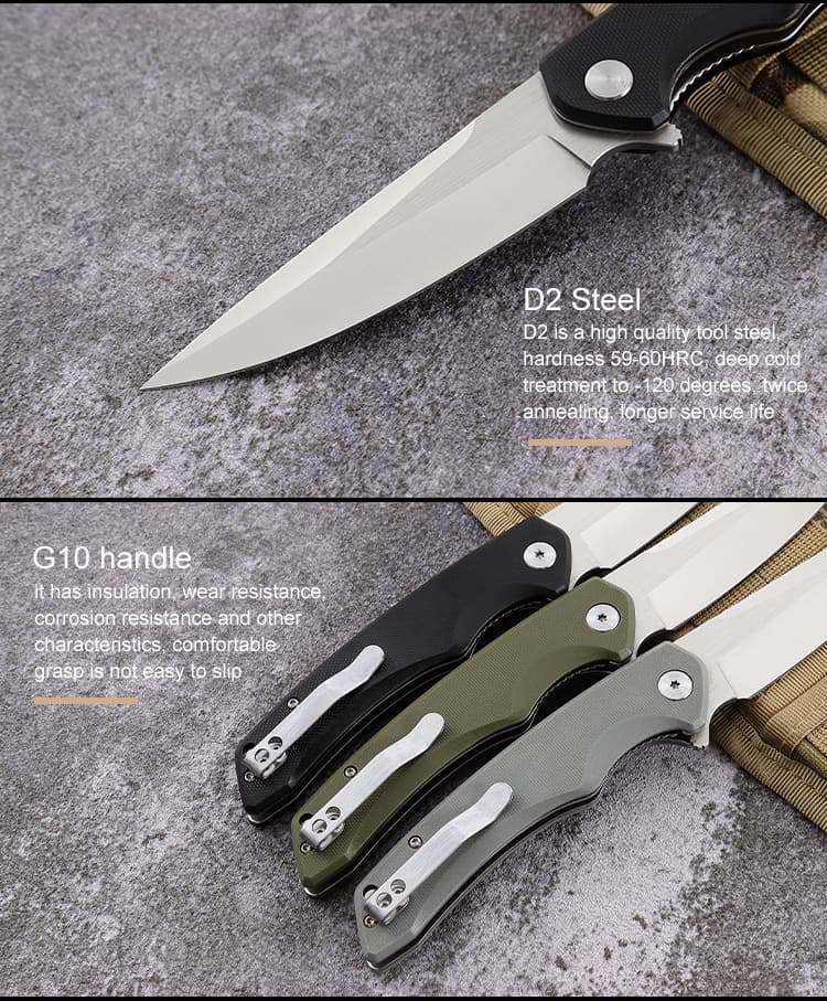 New Stock EDC Hunting Camping Pocket Knife D2 Steel Blade G10 Handle Knife Outdoor Survival Tactical Folding Knife