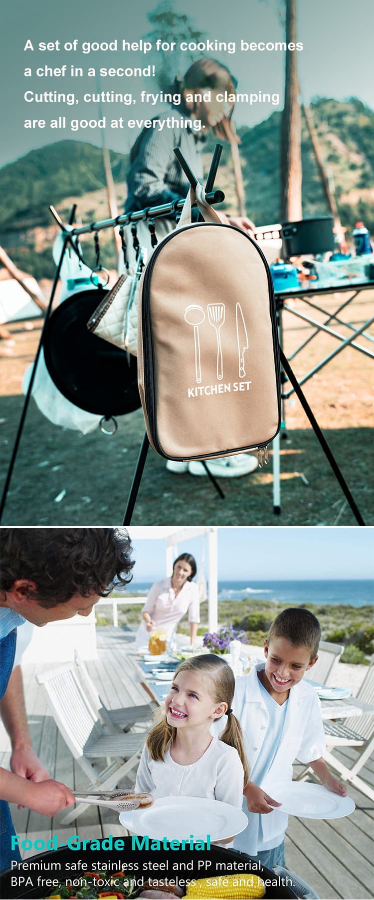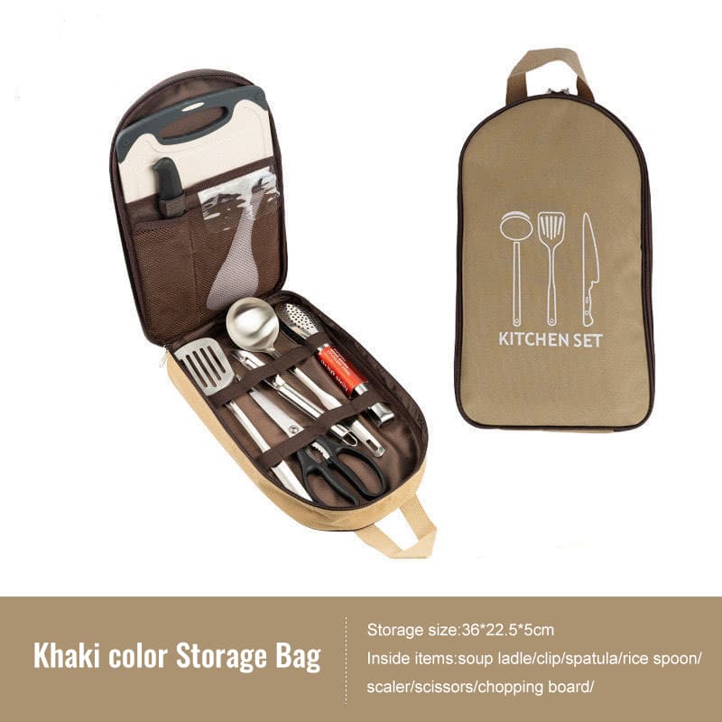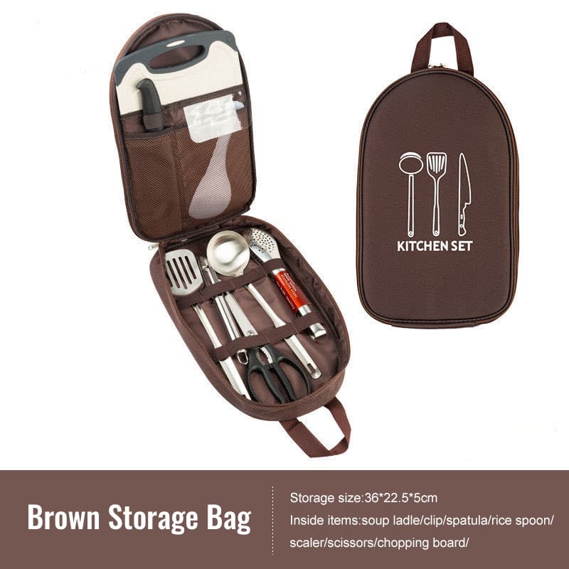 Outdoor Camping Cookware Container Cooking Utensil Organizer Kitchen Ware Storage Portable Travel BBQ Tableware