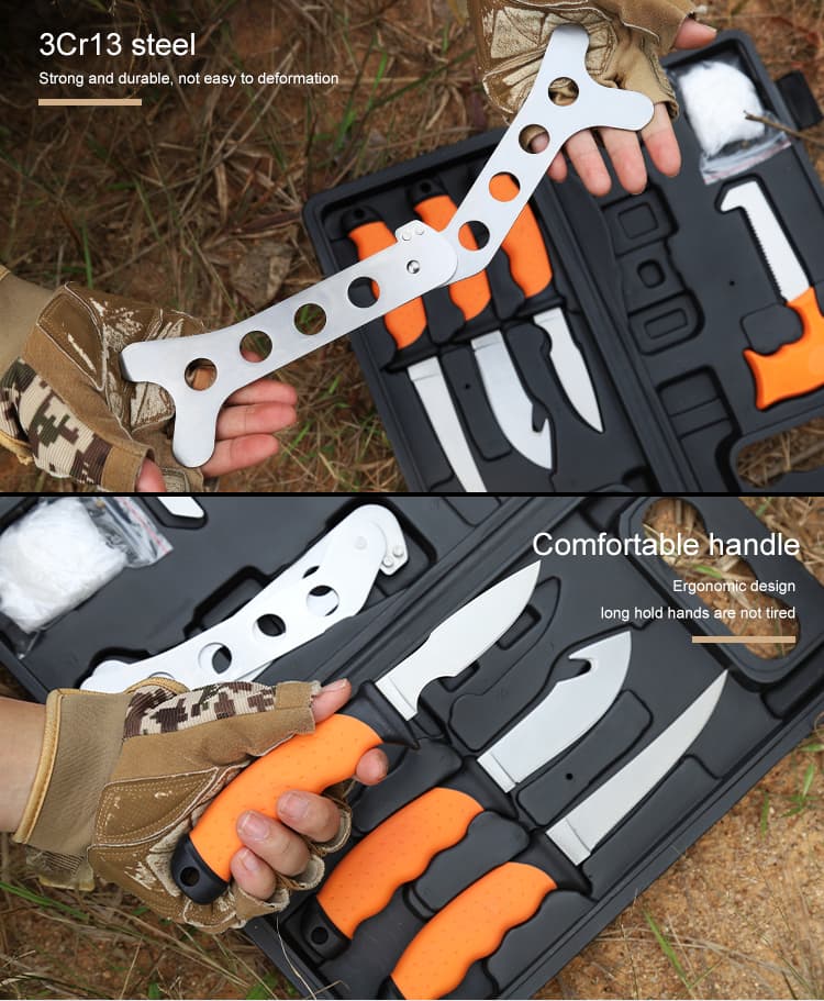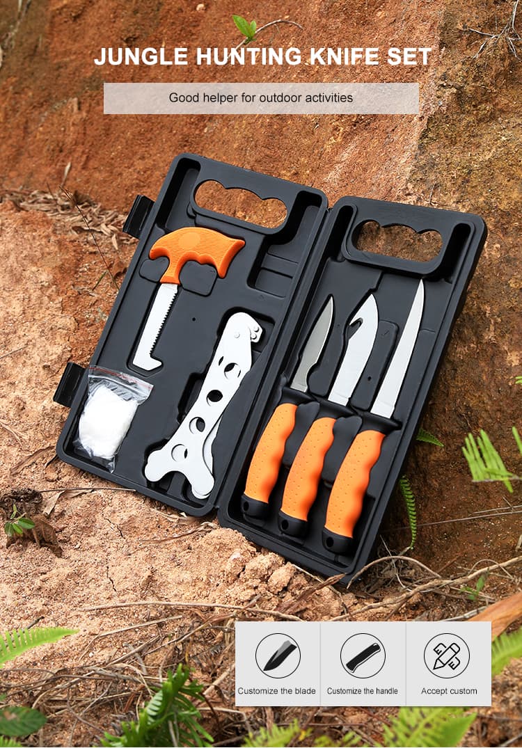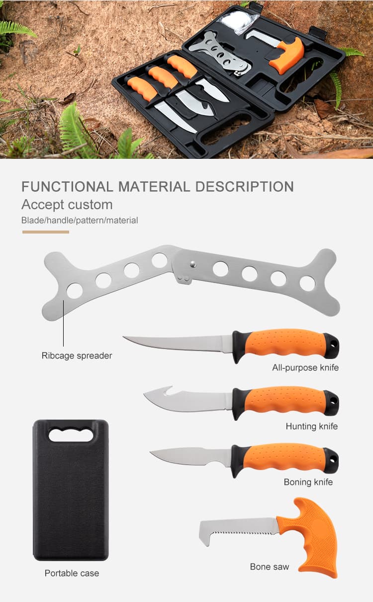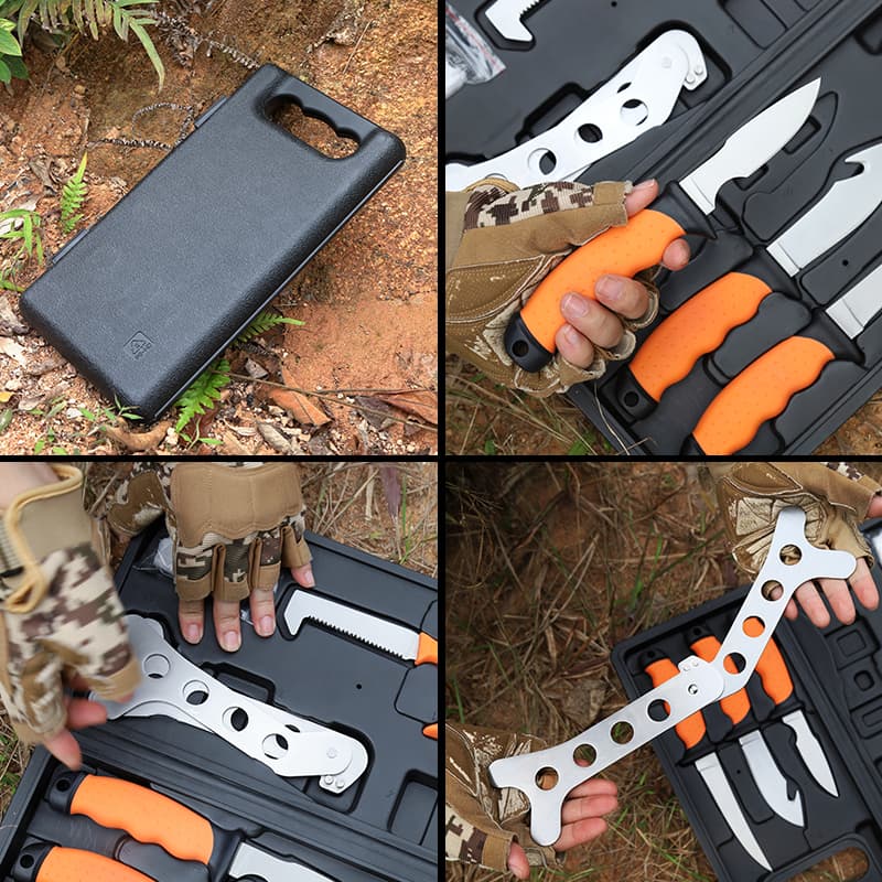 Outdoor Portable Butcher Game Processor Hunting Butcher Knife Set With Custom Box Camping Butcher Hunting Knife Set