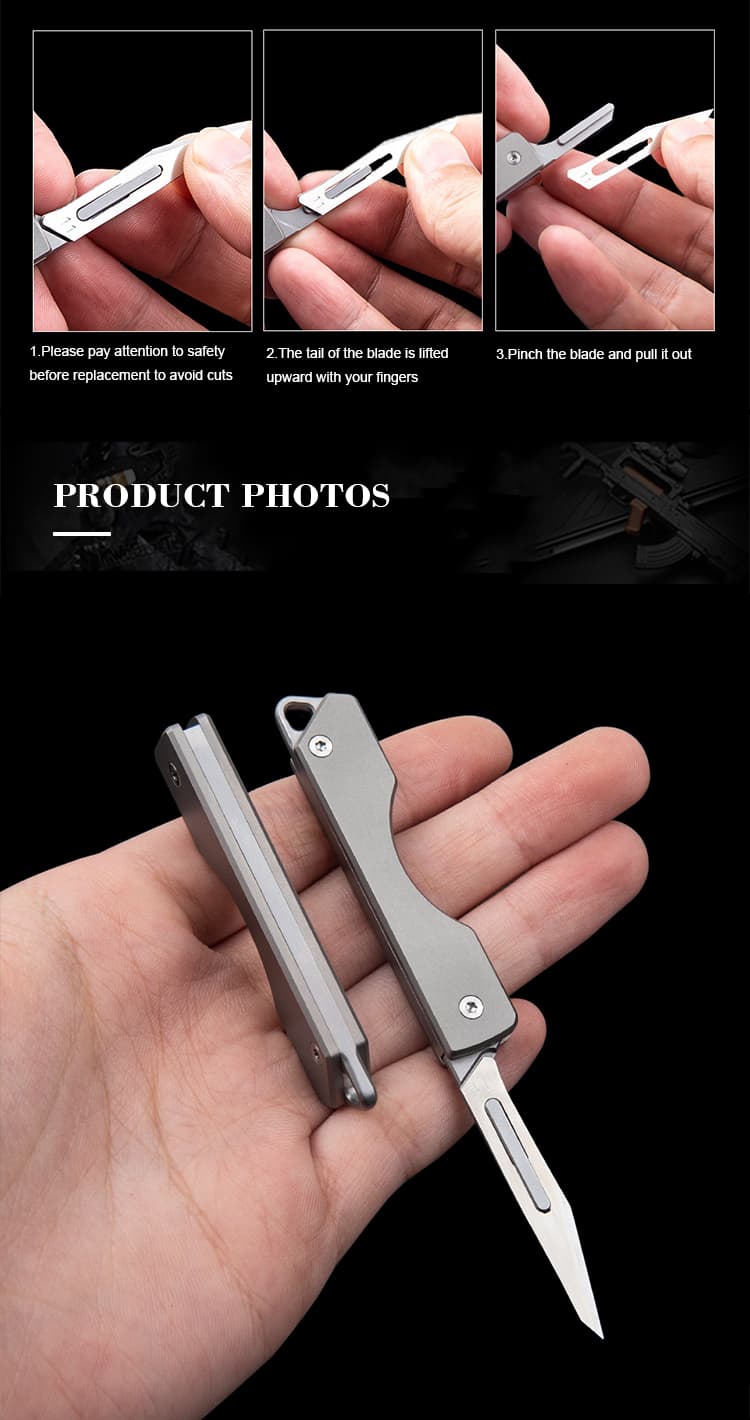 Portable Mini Titanium Folding Knife Stainless Quick Blade Replacement for Outdoor Utility Tactical Pocket Knife