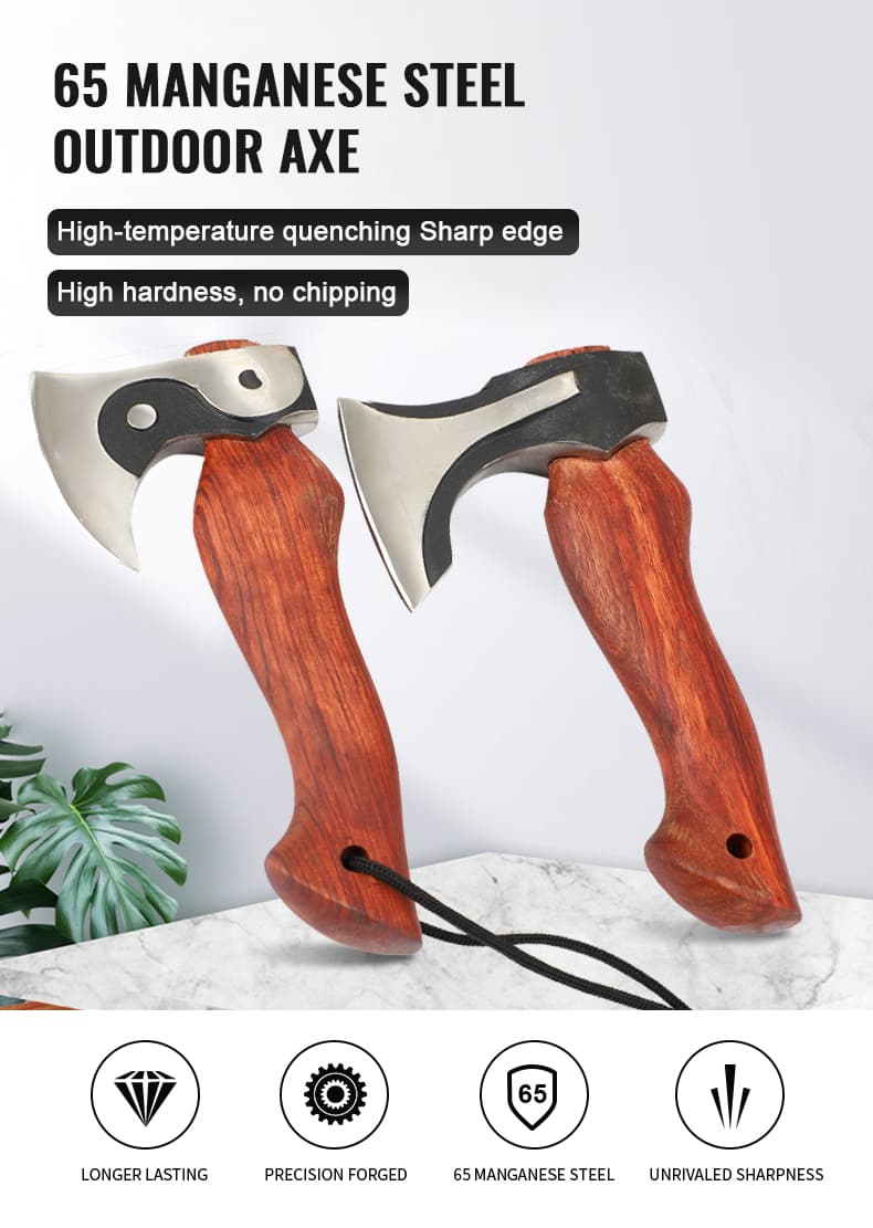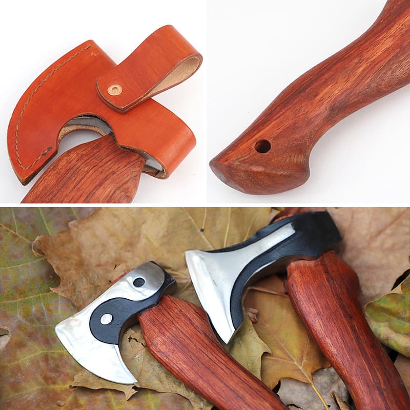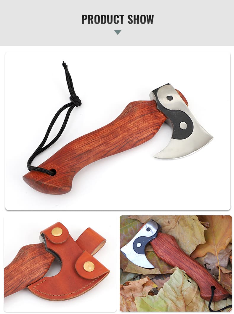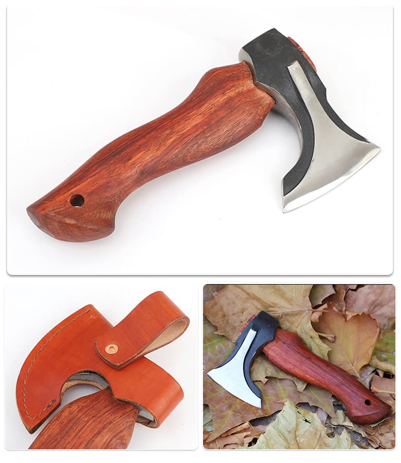Professional Customized Stainless Steel Axe High Quality Fixed Blade Hatchet with Solid Wooden Handle and Hand Made Leather Bag