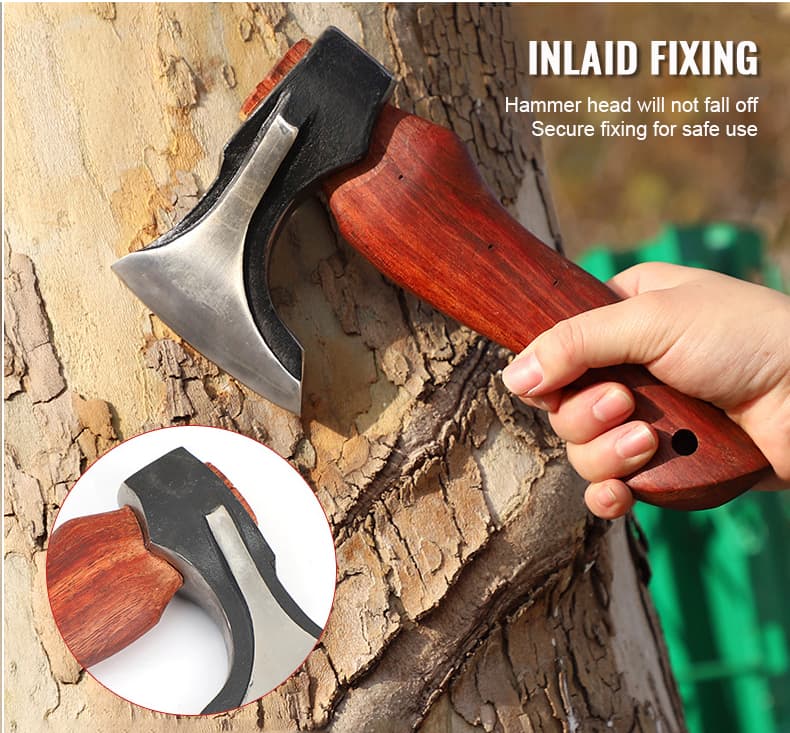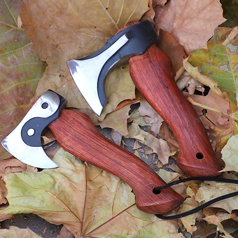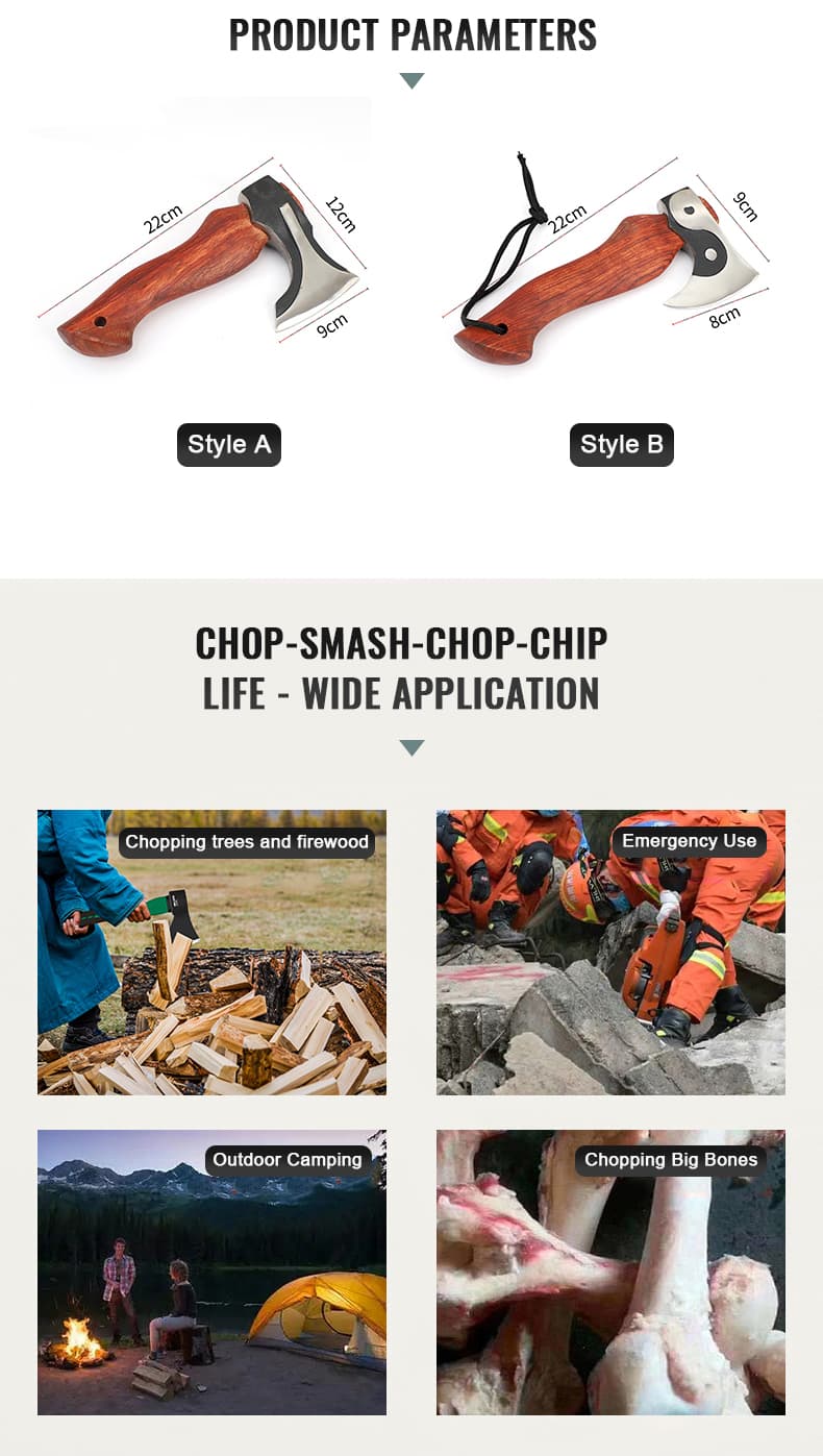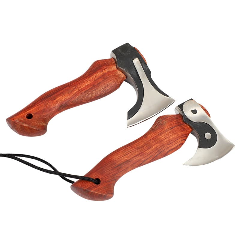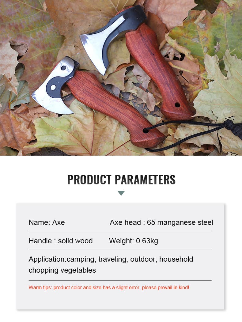 Professional Customized Stainless Steel Axe High Quality Fixed Blade Hatchet with Solid Wooden Handle and Hand Made Leather Bag
