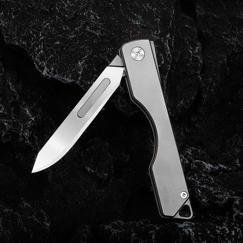 Replaceable Blade Handle With Internal Lock Practical Edc Keychain Stone Wash Knife Folding