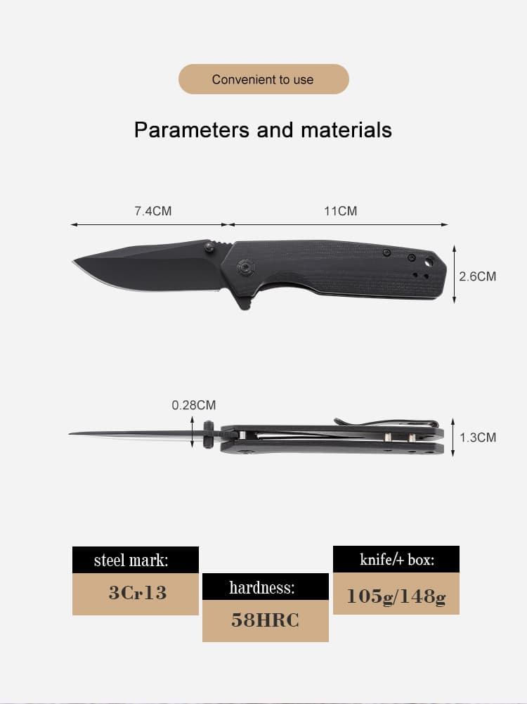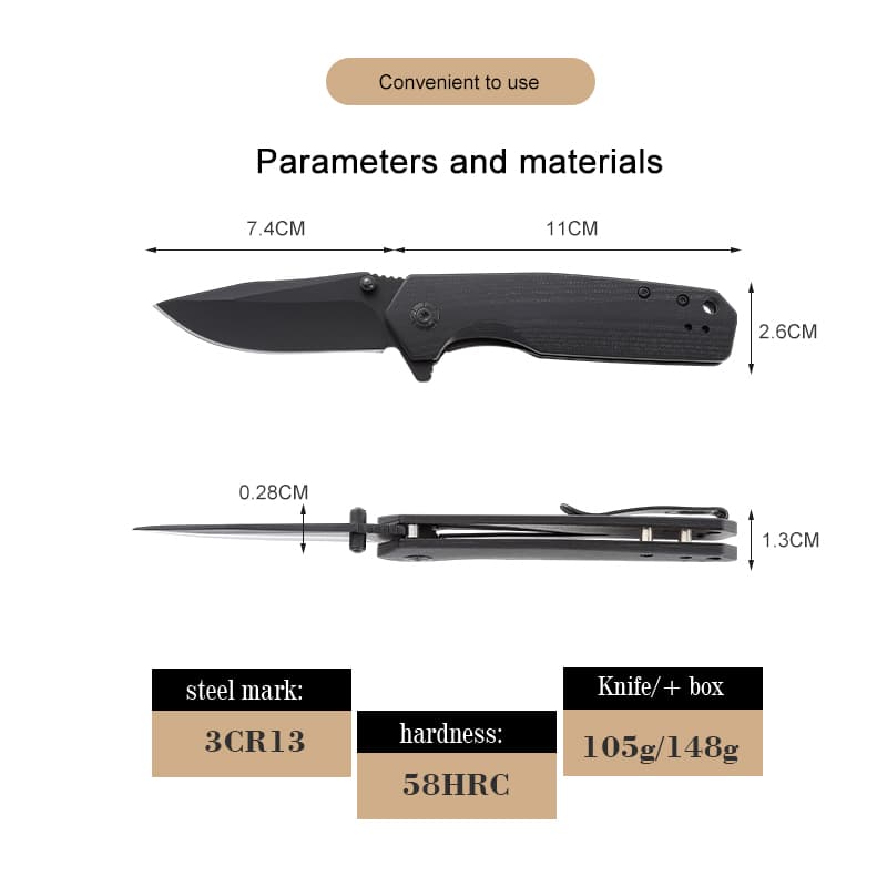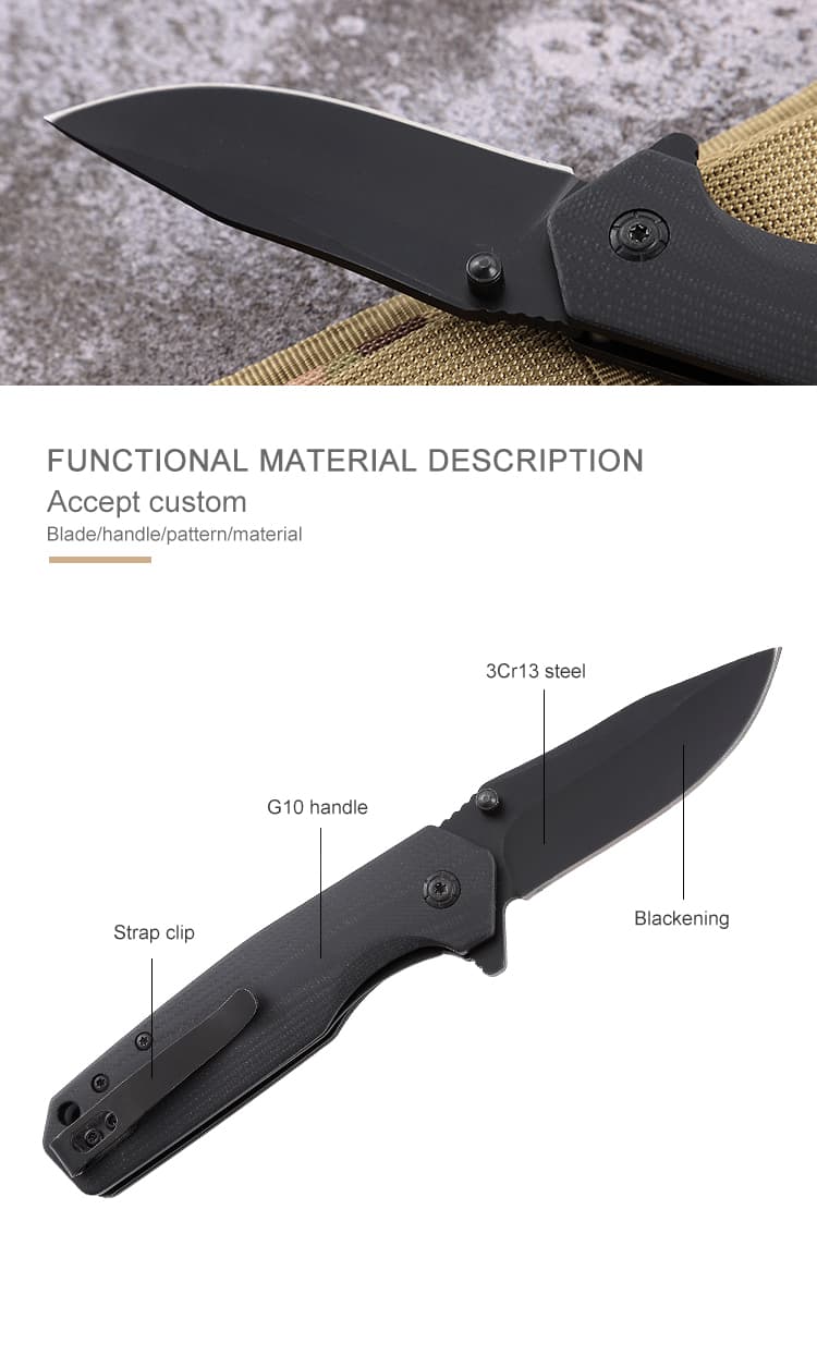 Hongrui is a factory with a history of 31 years, dedicated to design, development, and production. It sells outdoor knives, outdoor tools, life-saving tools, hardware products, plastic products, and kitchen supplies. The company has a complete and scientific quality management system. We support any customization and welcome your email. Feature: Multifunctional Place of Origin: Guangdong, China Customized support: OEM, OBM Material :3Cr13Mov steel Sample Time: 3 - 7 Days Packing box: box or custom Logo: Accept Custom Logo