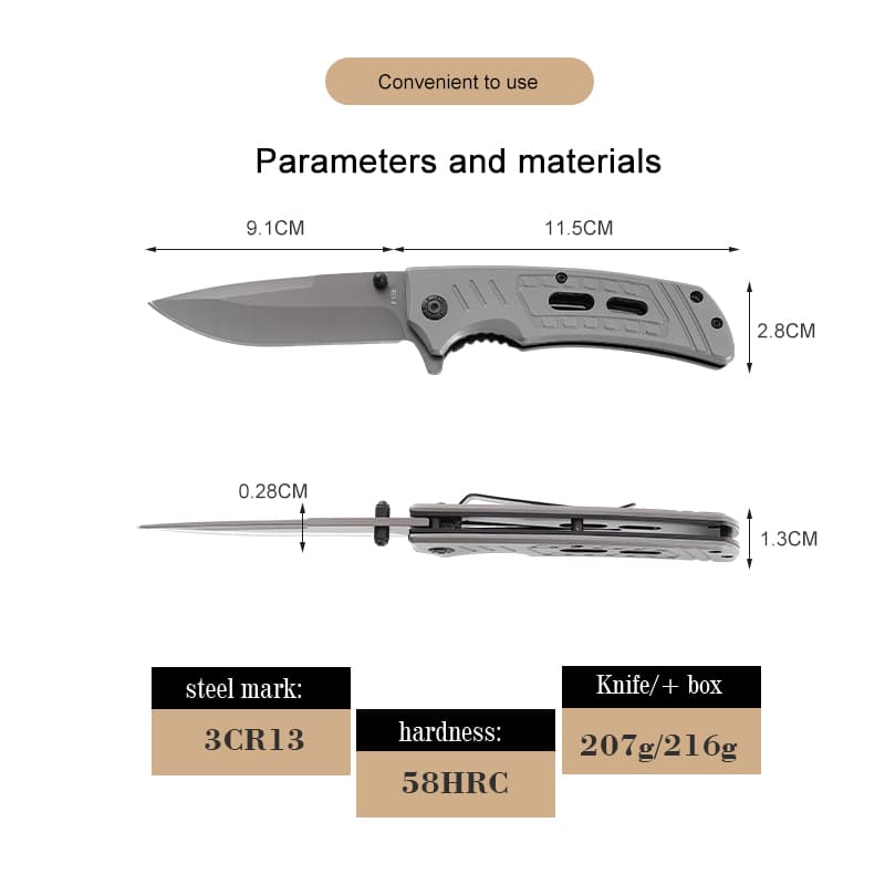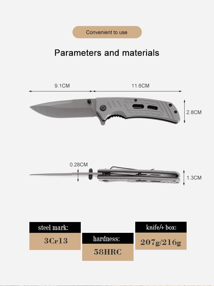Hongrui is a factory with a history of 31 years, dedicated to design, development, and production. It sells outdoor knives, outdoor tools, life-saving tools, hardware products, plastic products, and kitchen supplies. The company has a complete and scientific quality management system. We support any customization and welcome your email. Feature: Multifunctional Place of Origin: Guangdong, China Customized support: OEM, OBM Material :3Cr13Mov steel+Aluminium alloy Sample Time: 3 - 7 Days Packing box: box or custom Logo: Accept Custom Logo