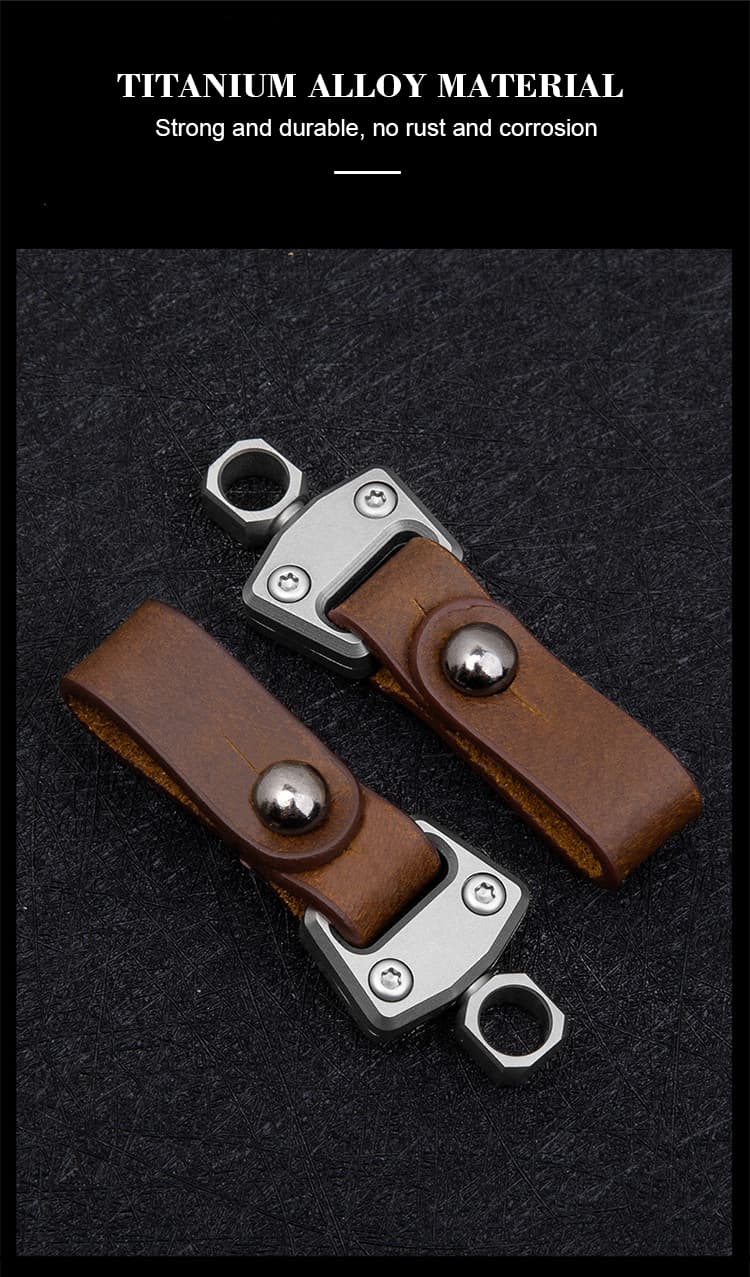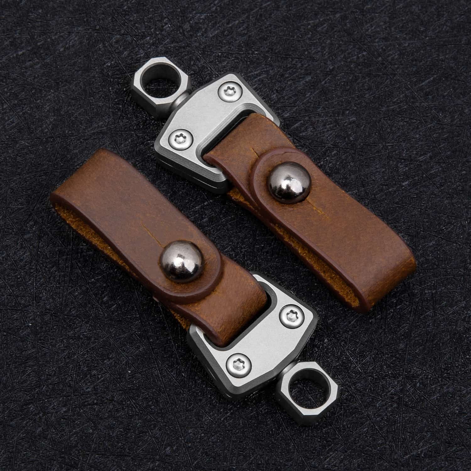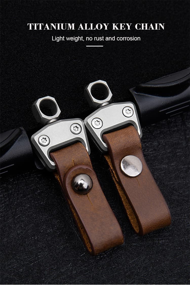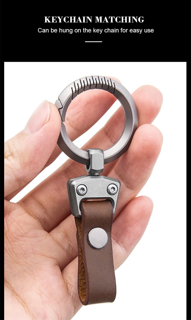 Simple Design Titanium Alloy and Leather Keychain Container Fashionable EDC Easy Carry Car Key Holder