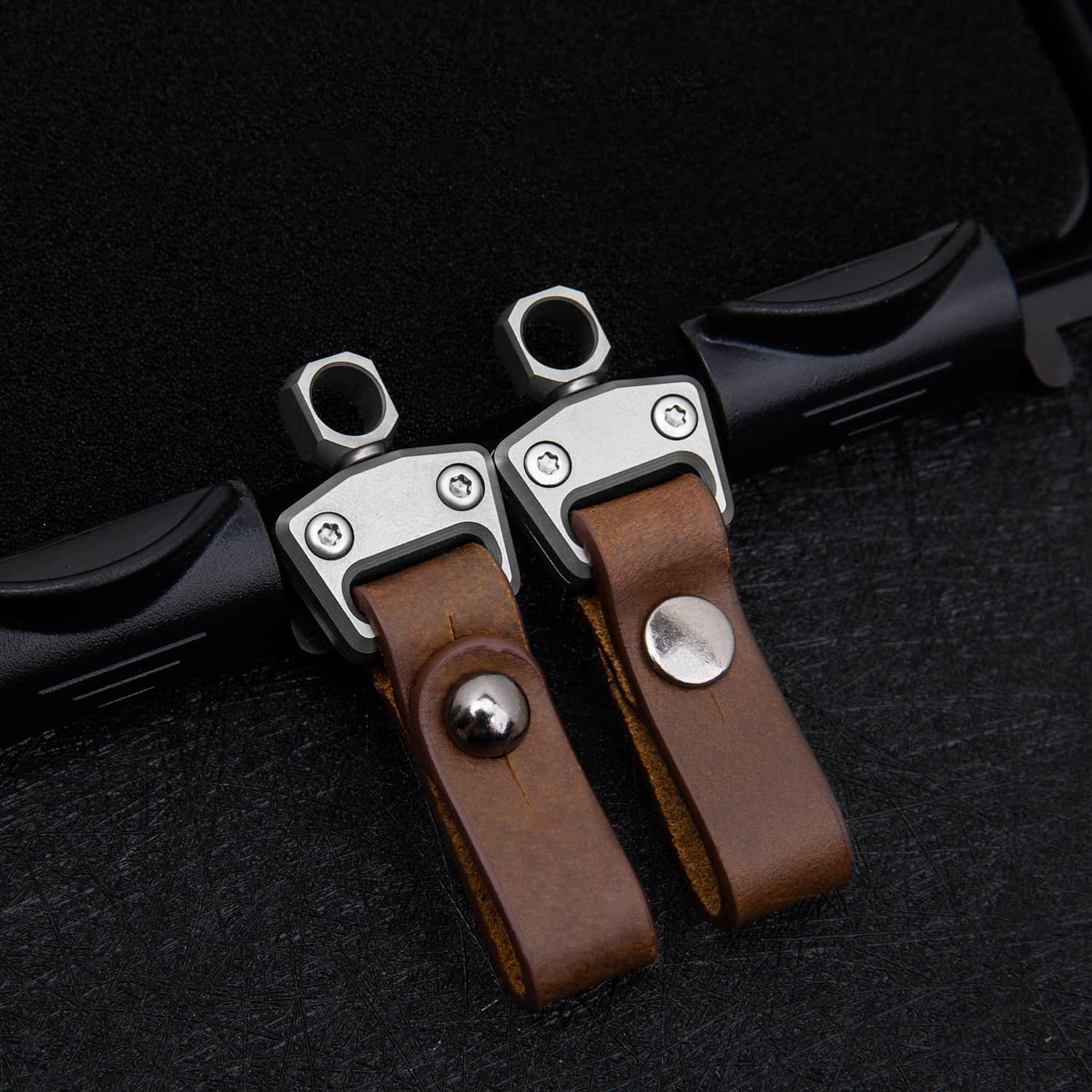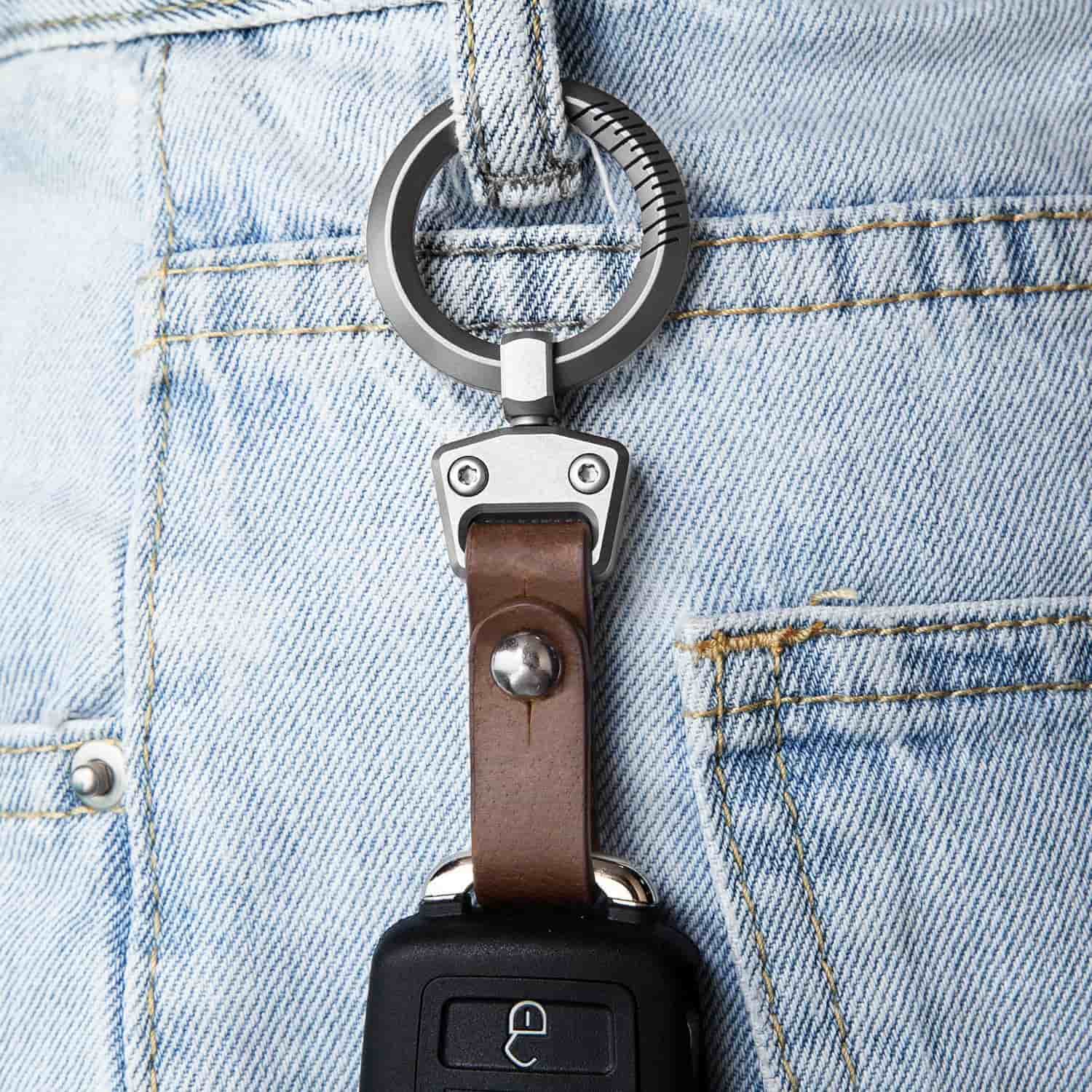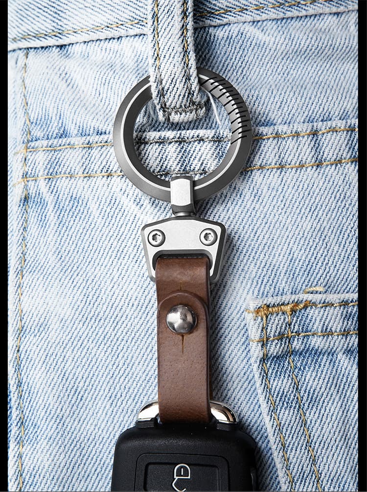 Simple Design Titanium Alloy and Leather Keychain Container Fashionable EDC Easy Carry Car Key Holder