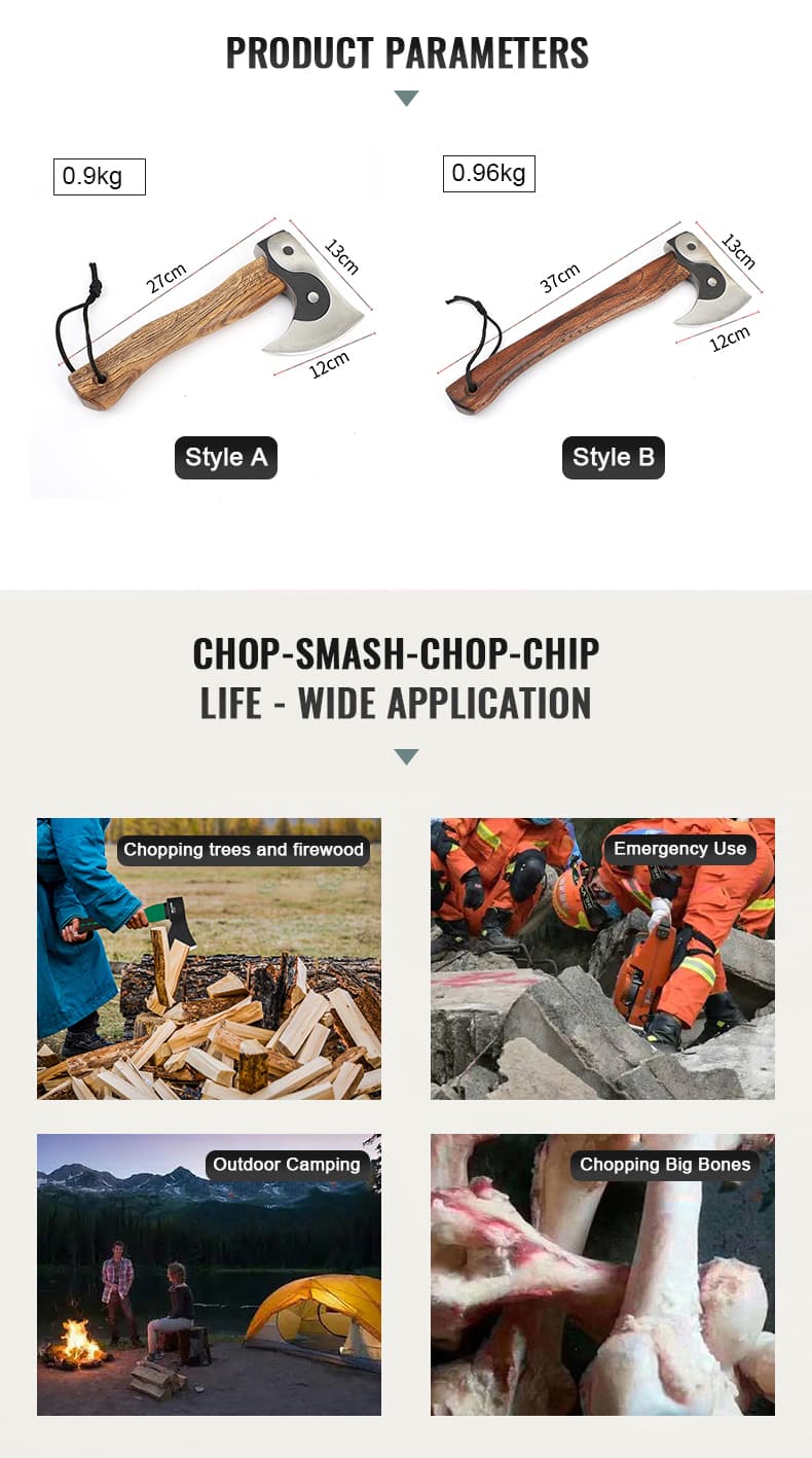 Solid Wood Handle 65 Manganese Steel Composite Axe Industrial Grade DIY Outdoor Survival Camping Cutting Sheath