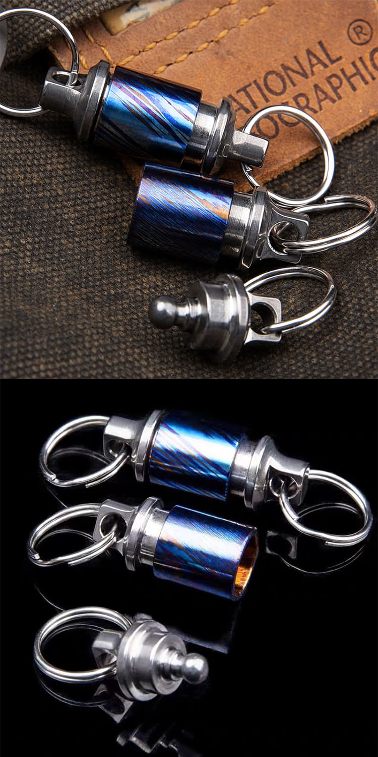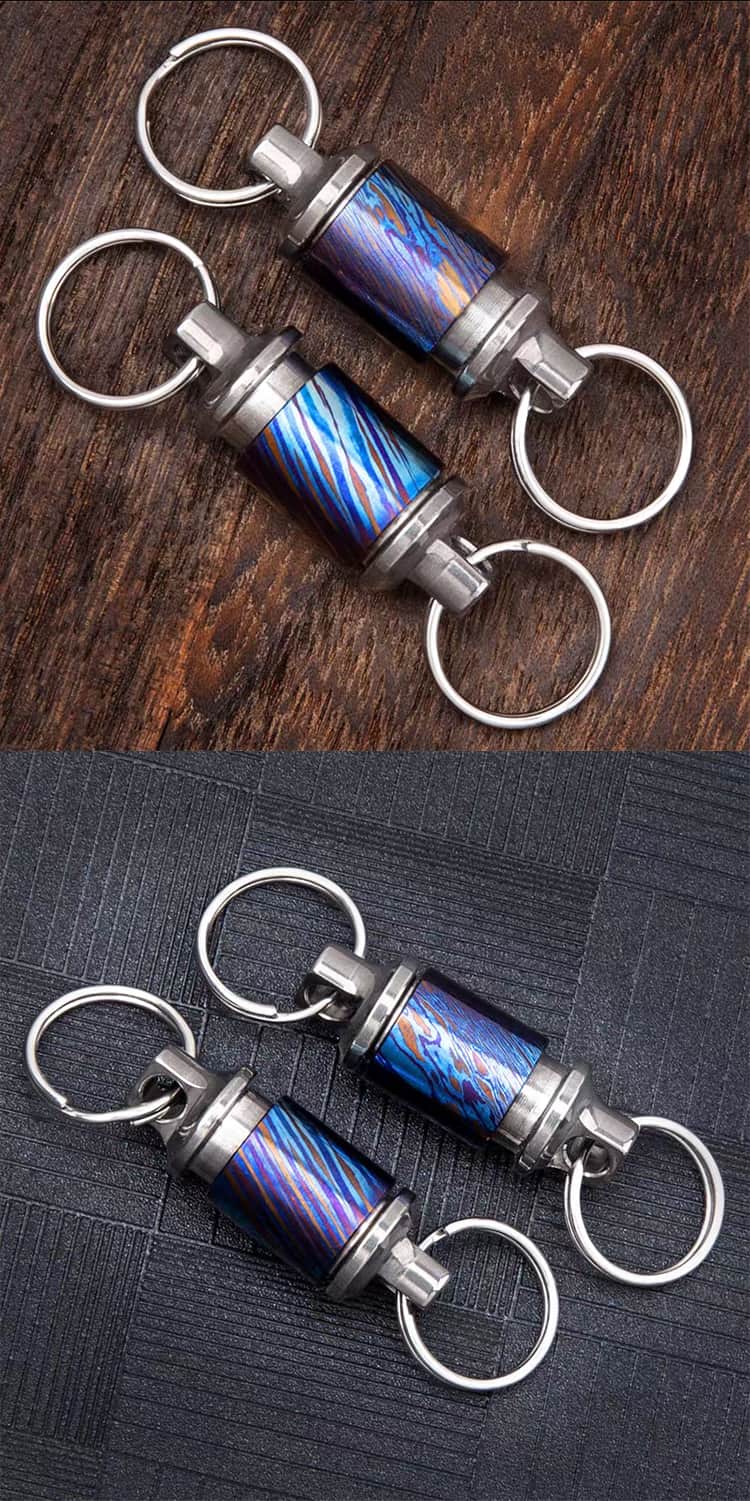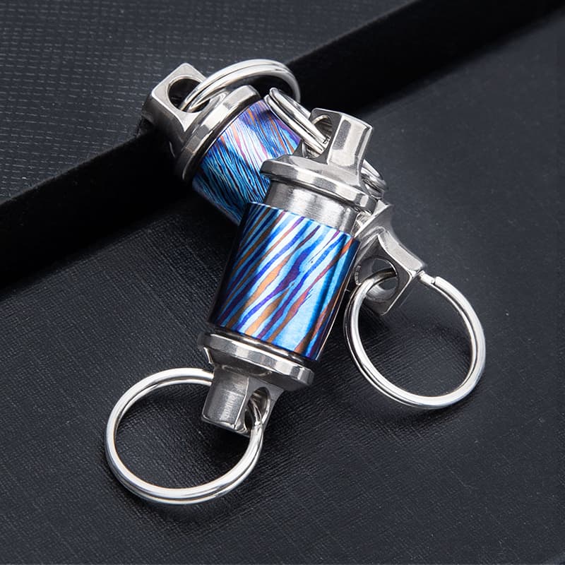 Titanium Damascus Retractable Keychain Quick Release Detachable Keychain Clip Pull Apart Key Rings-Hand Tools