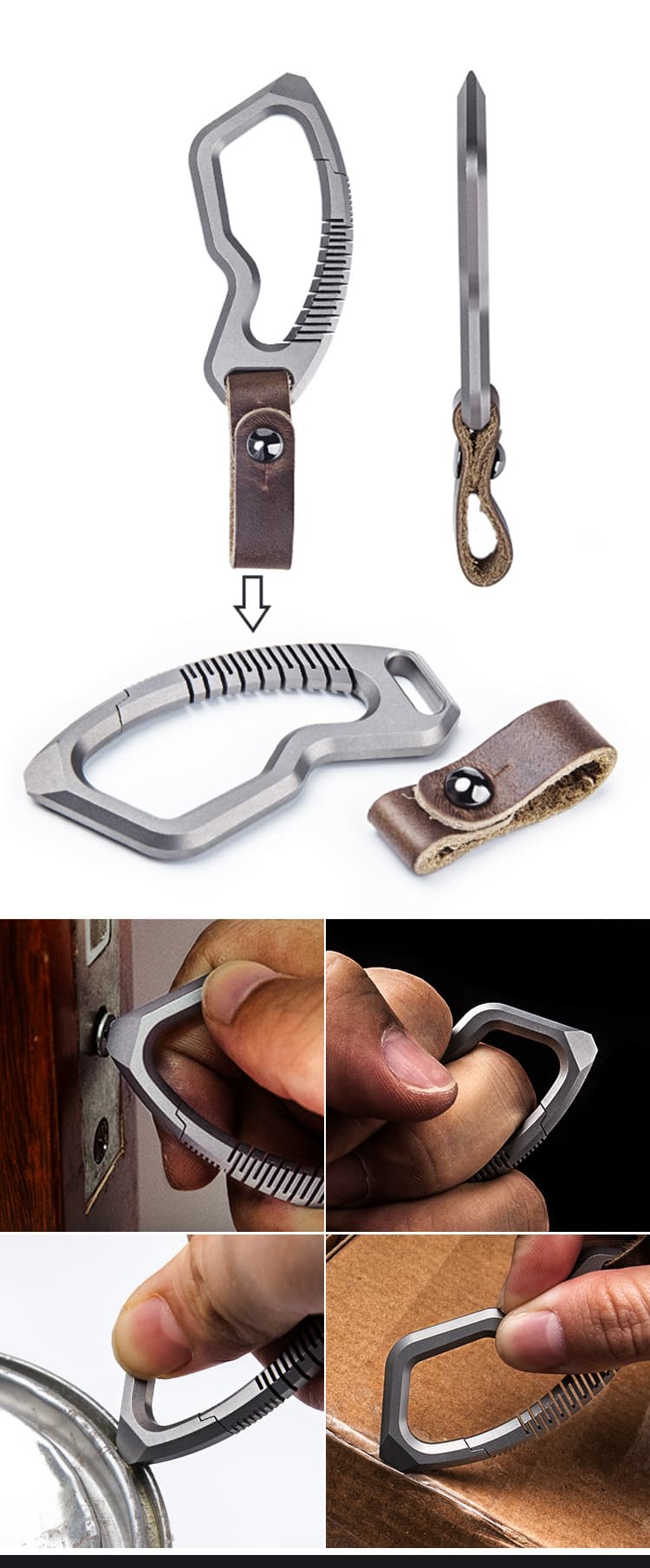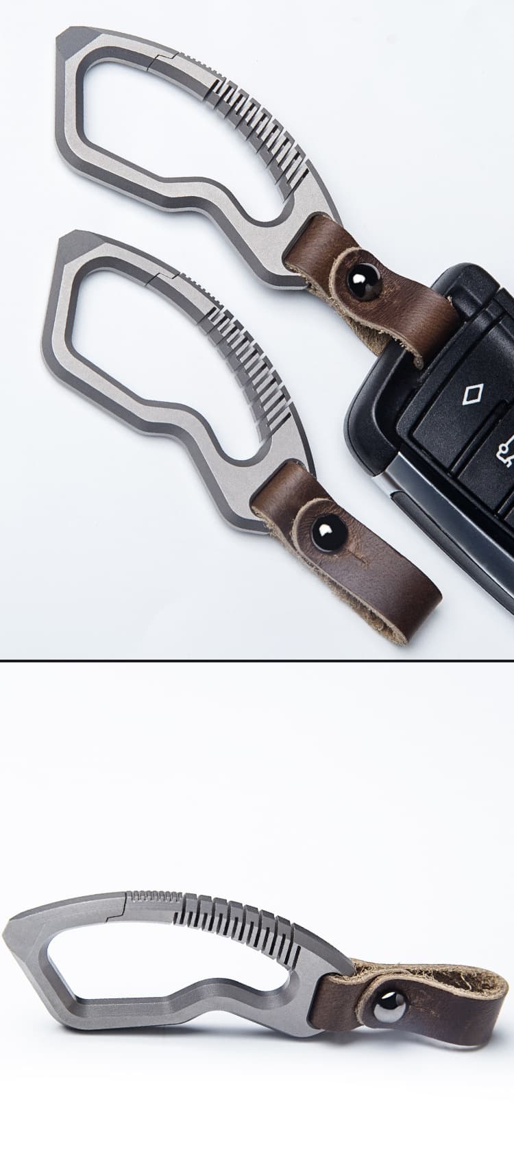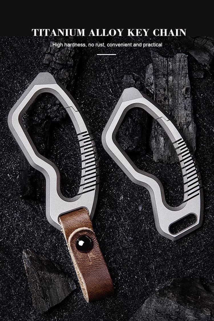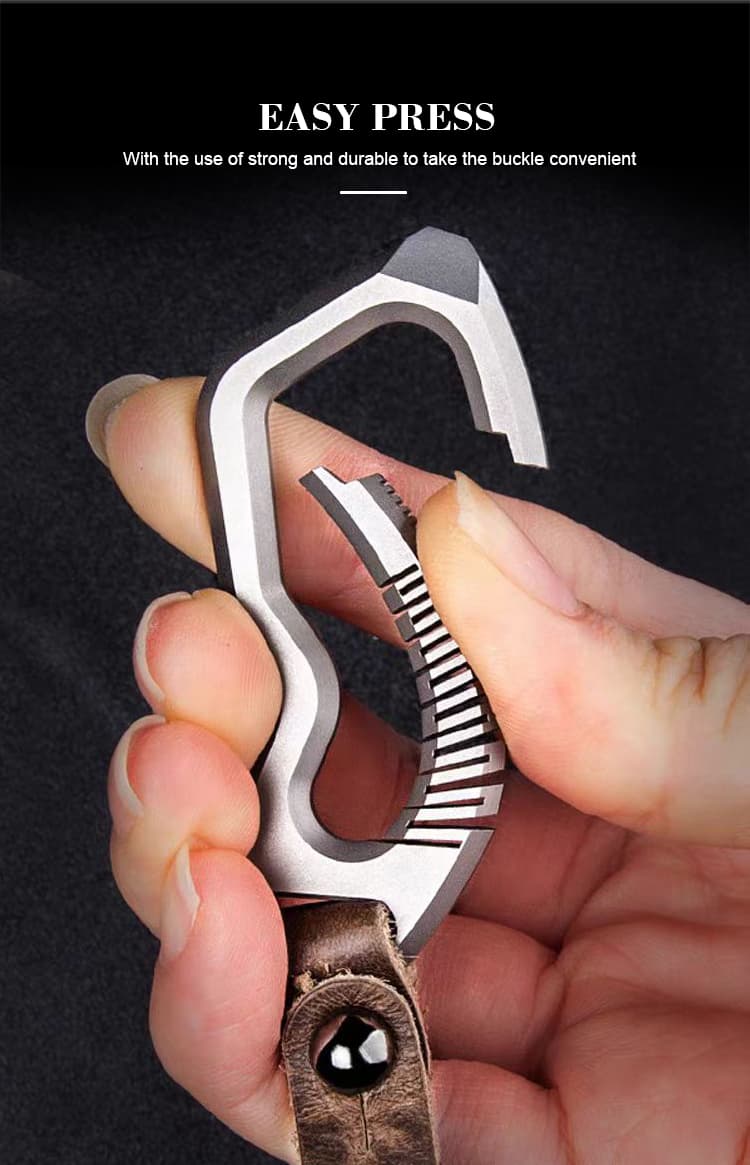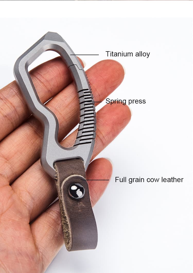Titanium Key Chain With Snap Lock Solid and Leather Belt Quick Release Carabiner With Key Ring's Holder Safety Hook Hanging