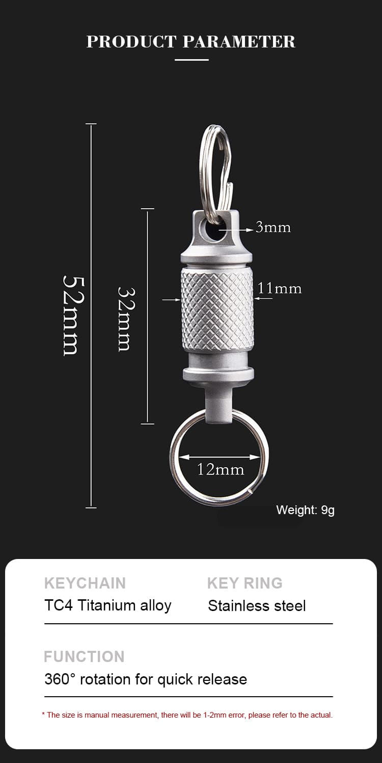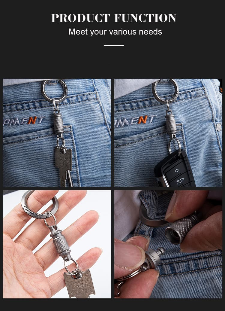 Titanium Quick Release Keychain, Retractable Key Chain Detachable Keychain Clip Pull Apart Key Rings for Men Women