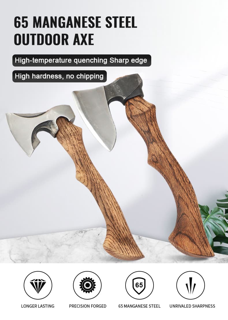 Wide Edge Forged Hand Axe 65 Manganese Steel Axe Ergonomics Wooden Handle Casting Head Chopper Camping Hunting Hatchet